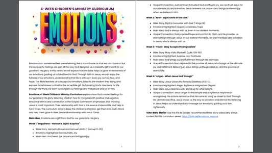 EMOTIONS: 4-Week Sunday School Curriculum for Children's Ministry