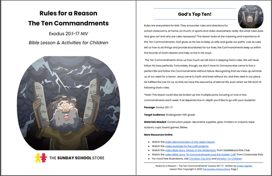 Rules for a Reason: The Ten Commandments (Exodus 20:1-17) Printable Bible Lesson & Sunday School Activities