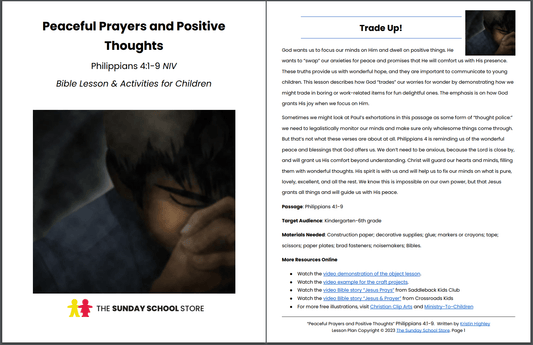 Peaceful Prayers and Positive Thoughts (Philippians 4:1-9) Printable Bible Lesson & Sunday School Activities