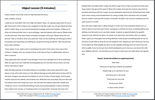 Parable of the Talents (Matthew 25:14-30) Printable Bible Lesson & Sunday School Activities