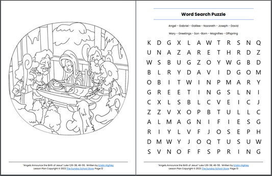 Angels Announce the Birth of Jesus (Luke 1:26-38; 46-55) Printable Bible Lesson & Sunday School Activities