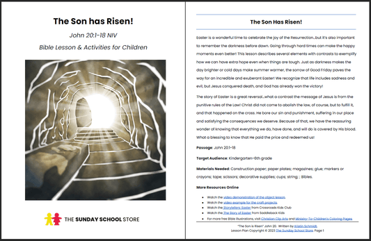 The Son Has Risen (John 20:1-18) Easter Sunday School Lesson & Activities for Kids