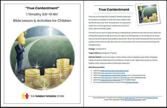 True Contentment Vs. Love of Money (1 Timothy 6:9-19) Printable Bible Lesson & Sunday School Activities