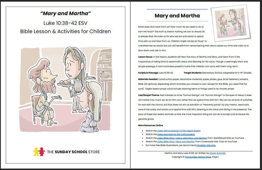 Martha and Mary (Luke 10:38-42) Printable Bible Lesson & Sunday School Activities