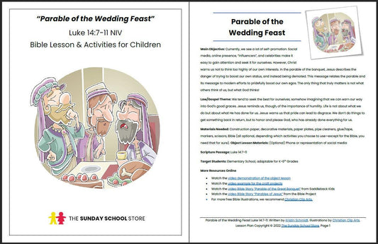 Parable of the Wedding Feast (Luke 14:7-11) Printable Bible Lesson & Sunday School Activities