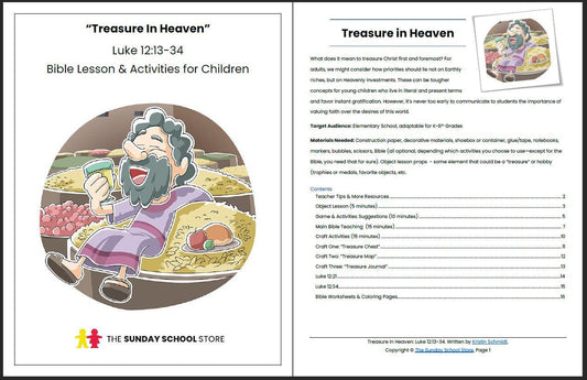 Treasure in Heaven (Luke 12:13-34) Printable Bible Lesson & Sunday School Activities