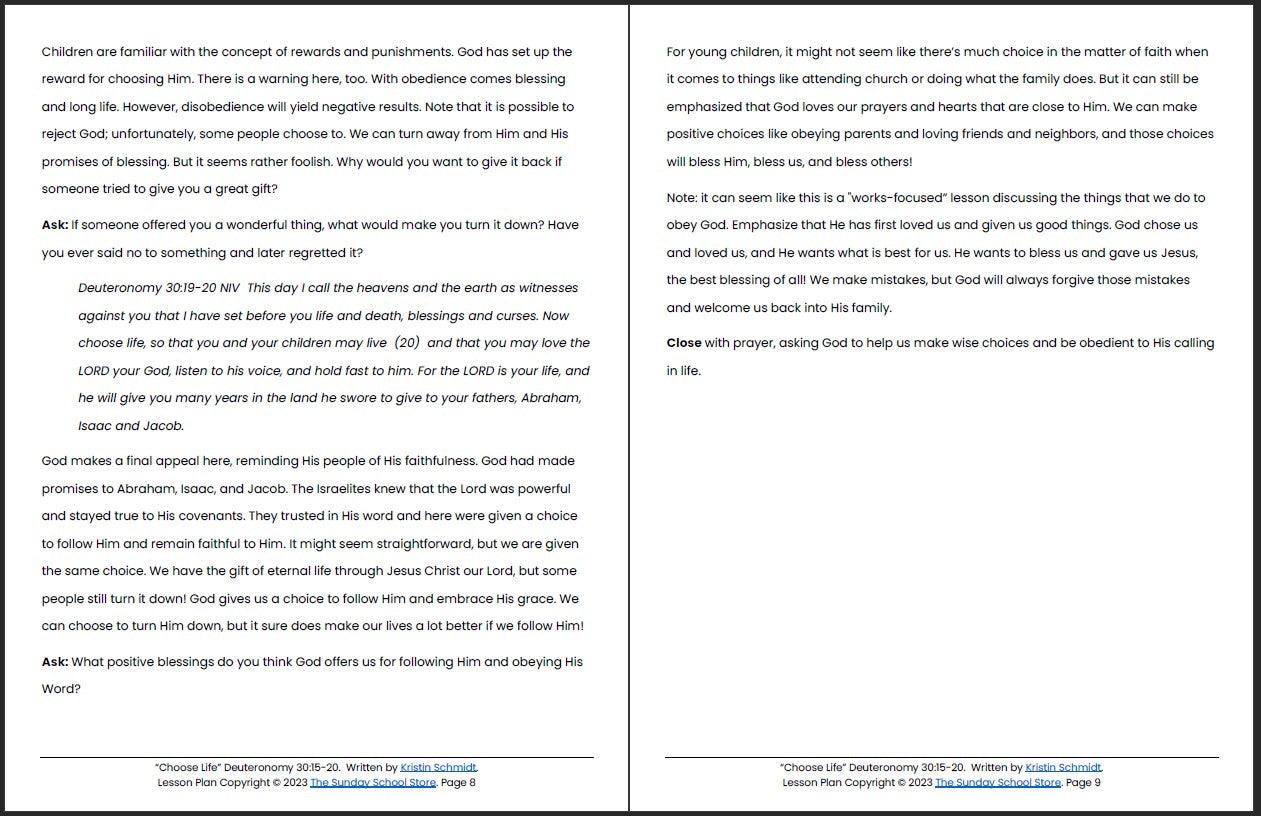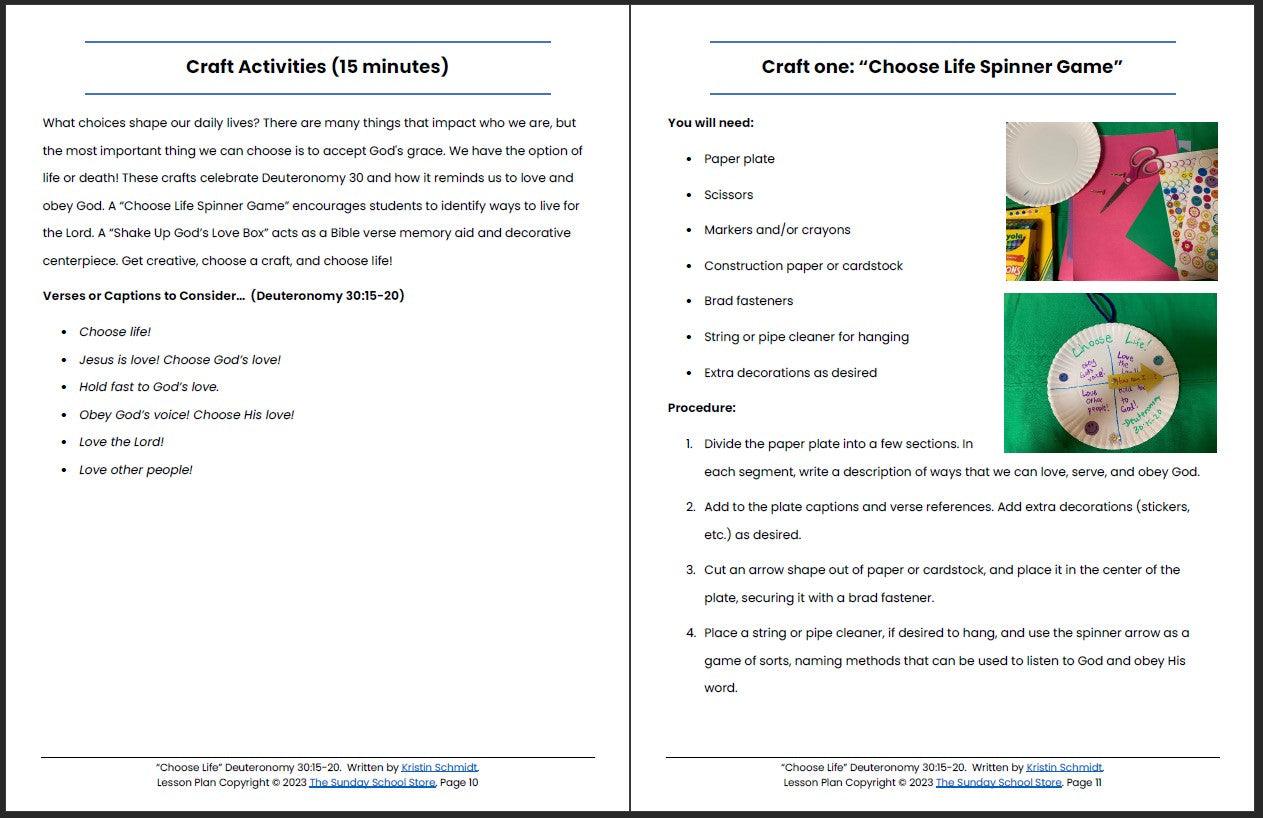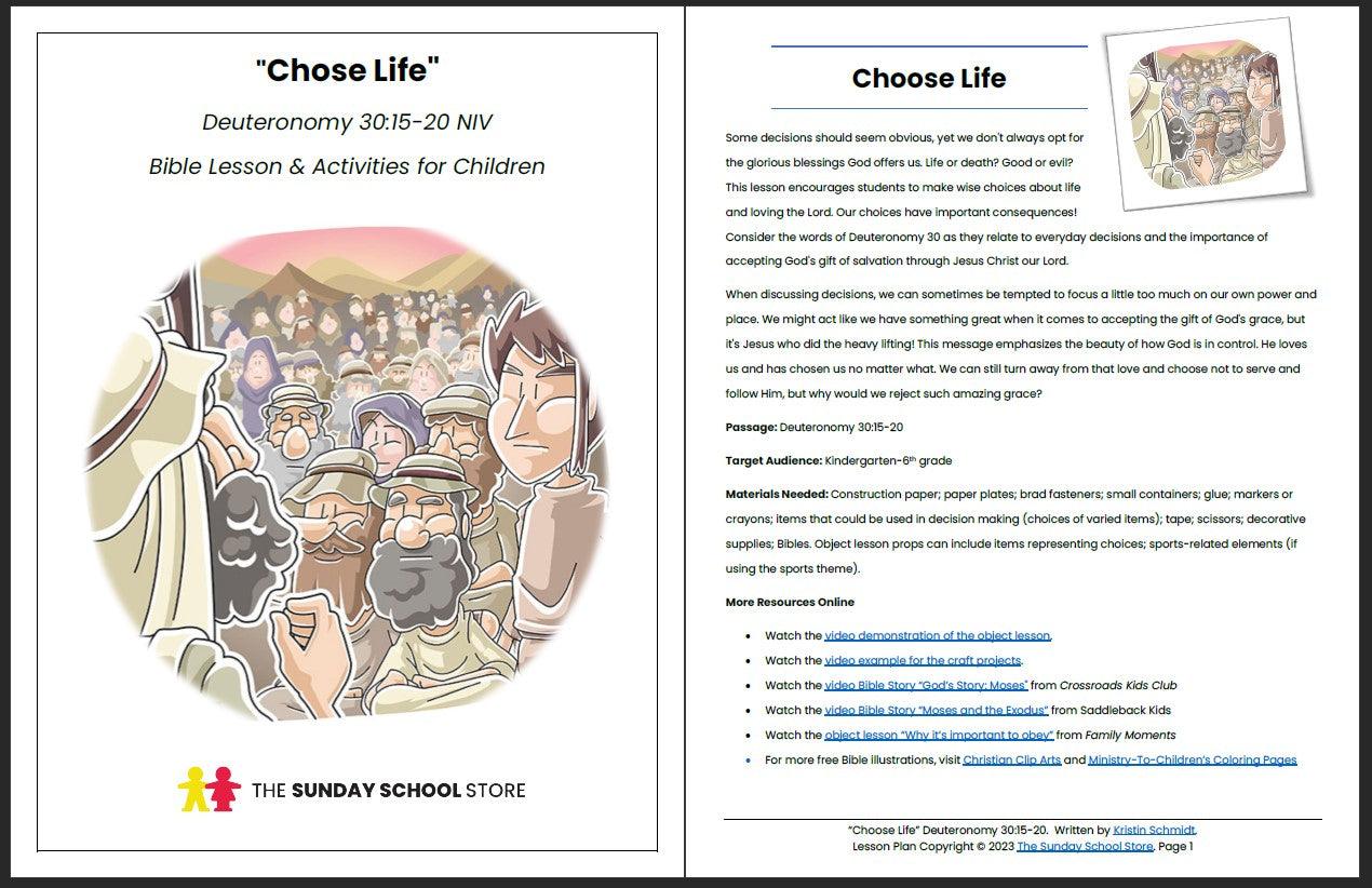 Choose Life (Deuteronomy 30:15-20) Printable Bible Lesson & Sunday School Activities
