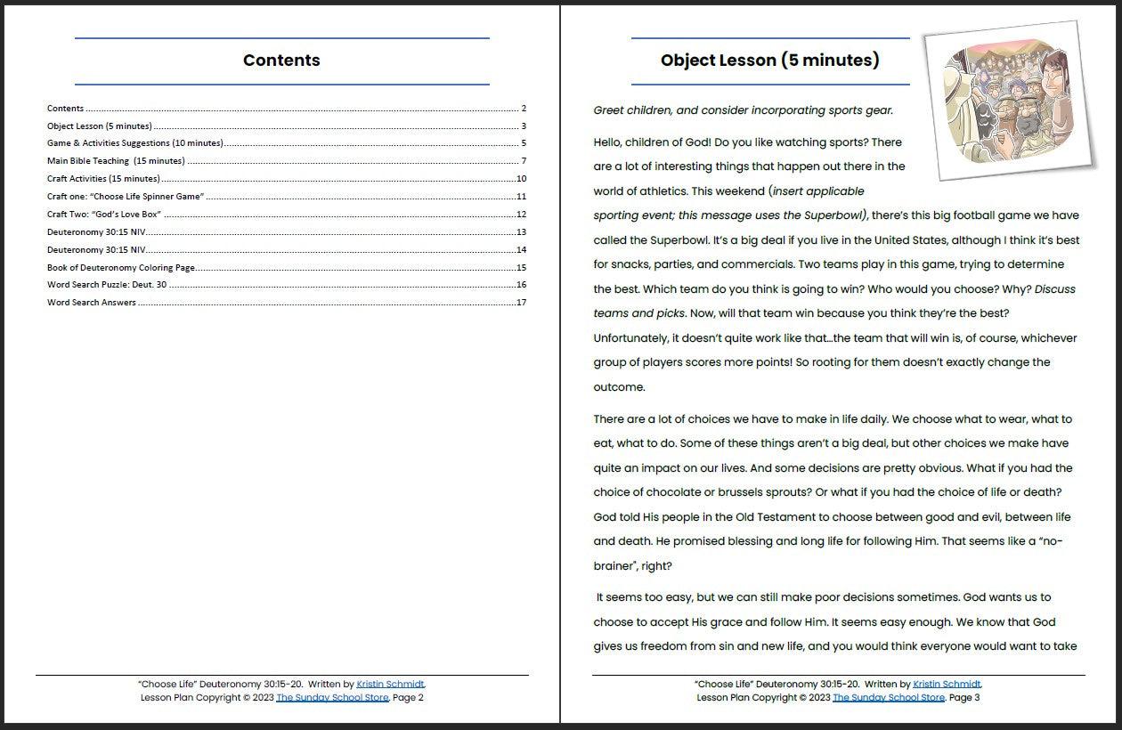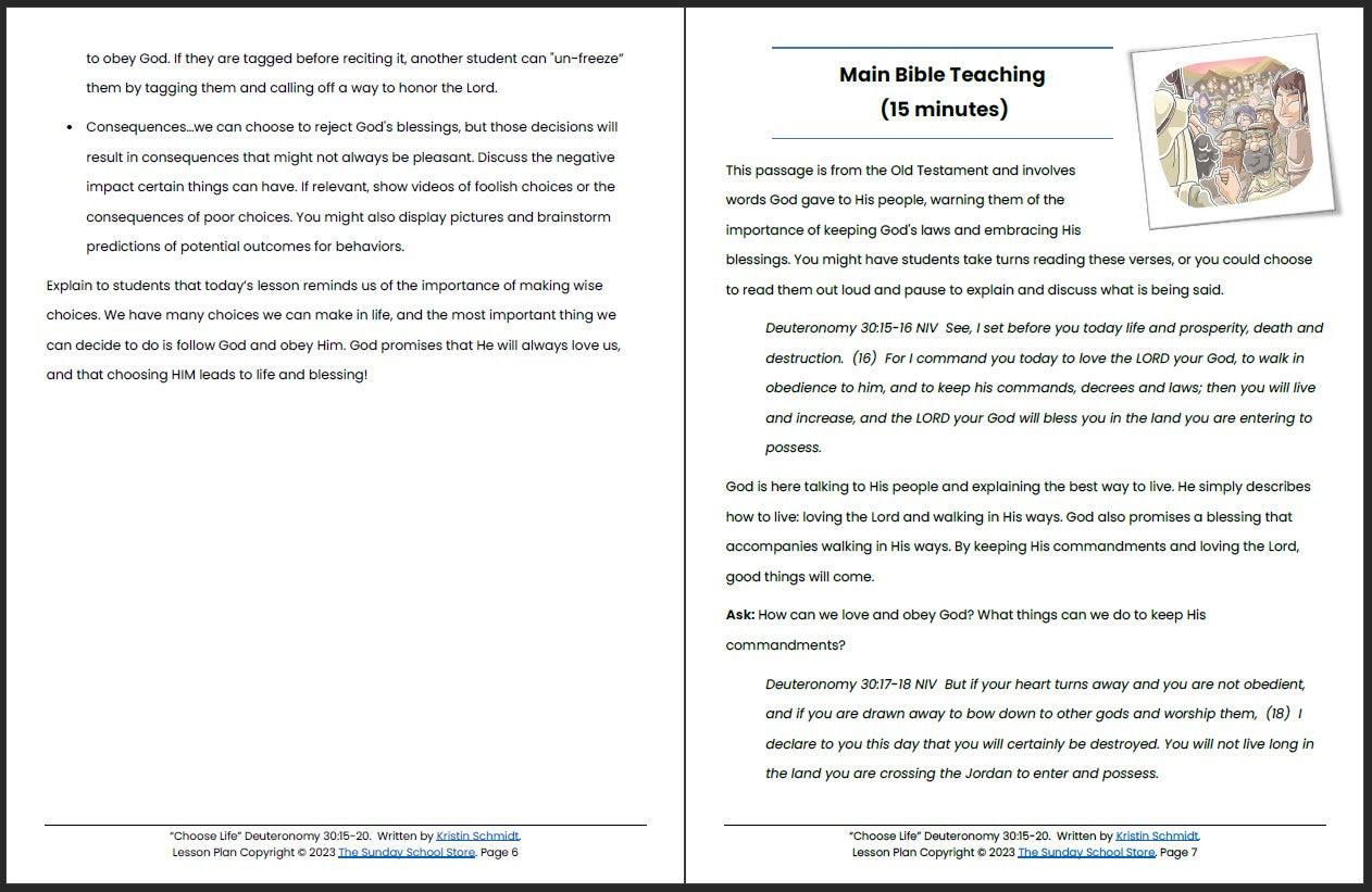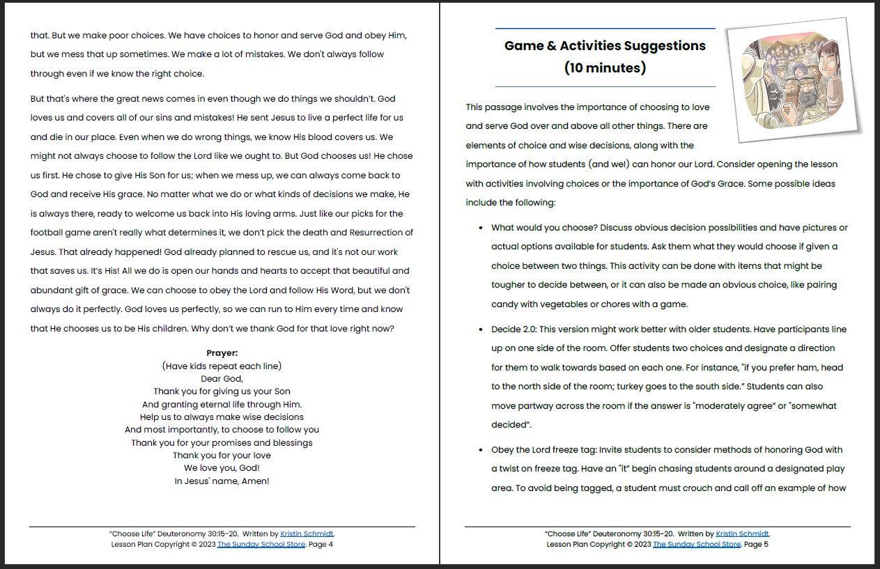 Choose Life (Deuteronomy 30:15-20) Printable Bible Lesson & Sunday School Activities