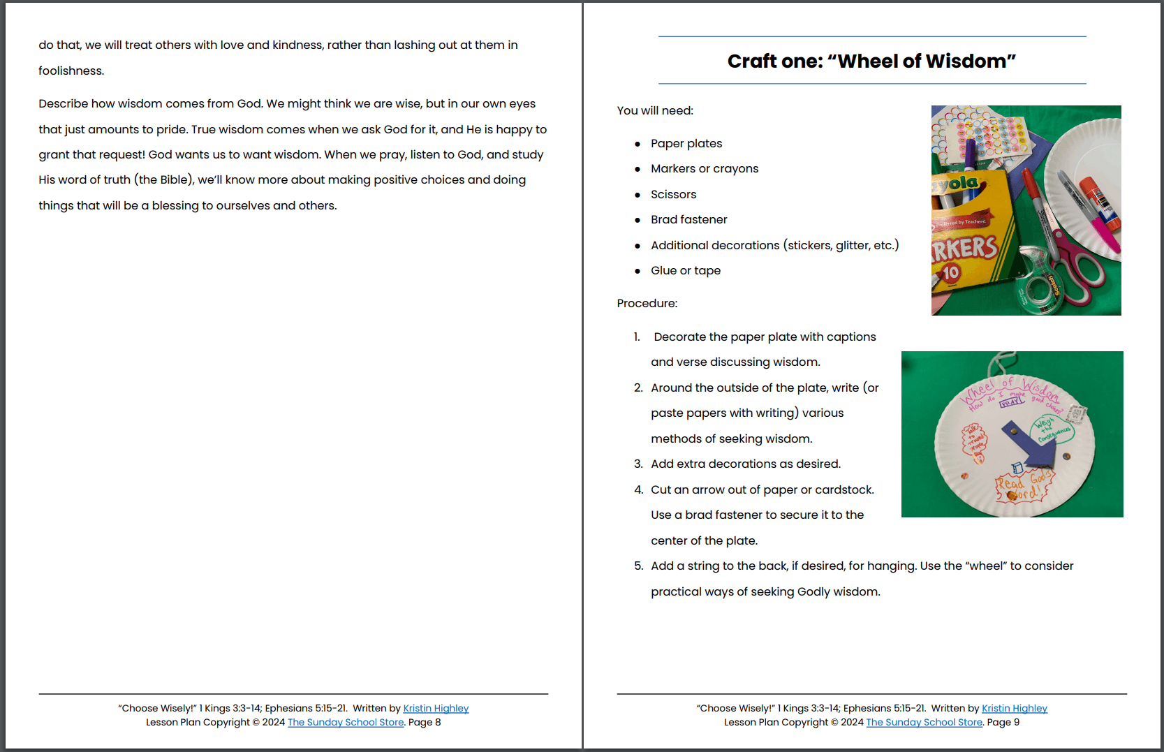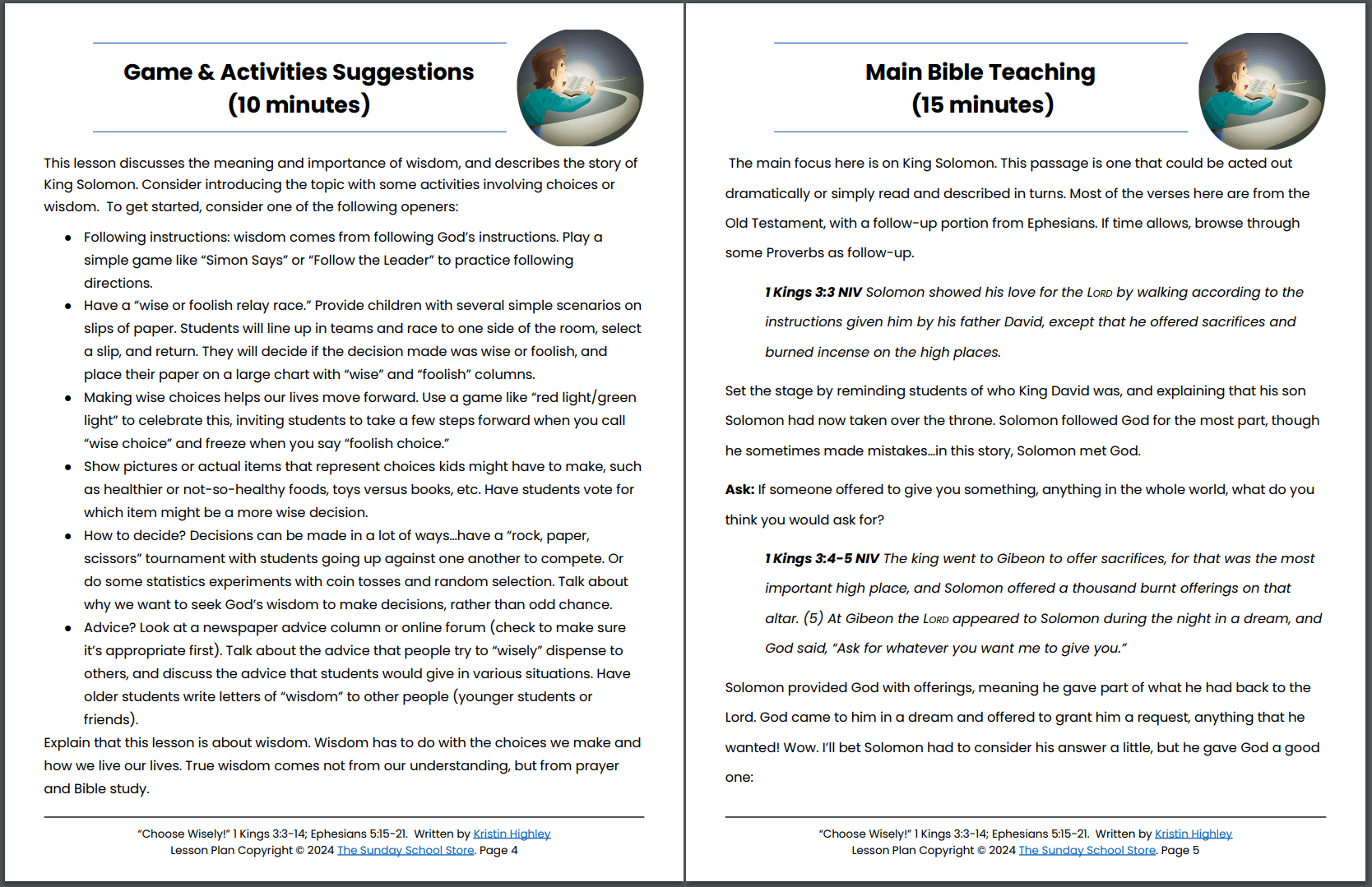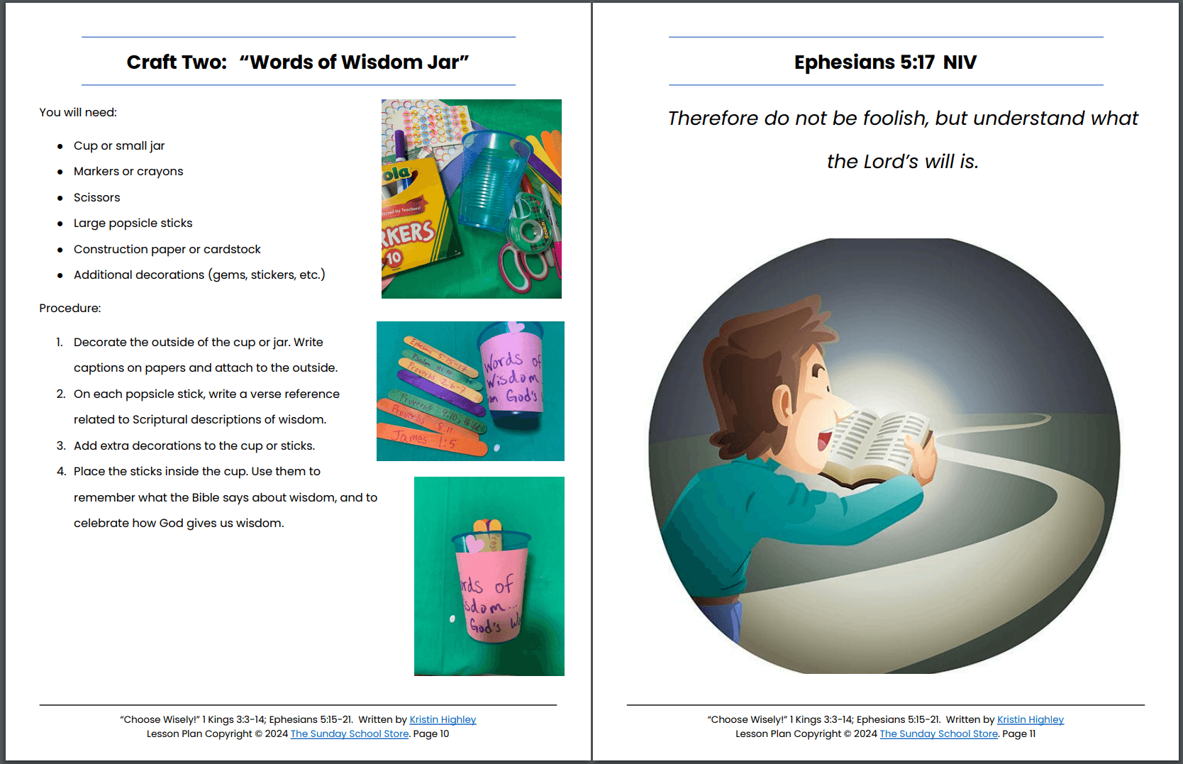 Choose Wisely! 1 Kings 3:3-14; Ephesians 5:15-21 Sunday School Lesson & Activities for Kids PDF