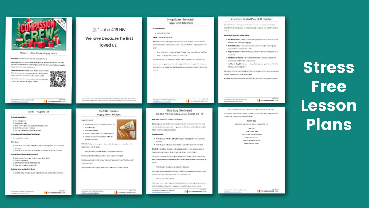 The Compassion Crew Preschool Curriculum helps little ones (ages 3-5) learn about Jesus' special birth at Christmas and how they can share His love with others. Over four weeks, preschoolers will discover that Jesus came to show us how much God loves us, and they can be part of spreading that love through simple acts of kindness. Through interactive lessons and engaging Bible stories, children will learn that being kind to others is one way we can celebrate Jesus!
