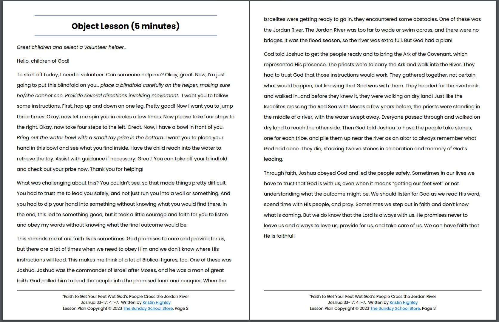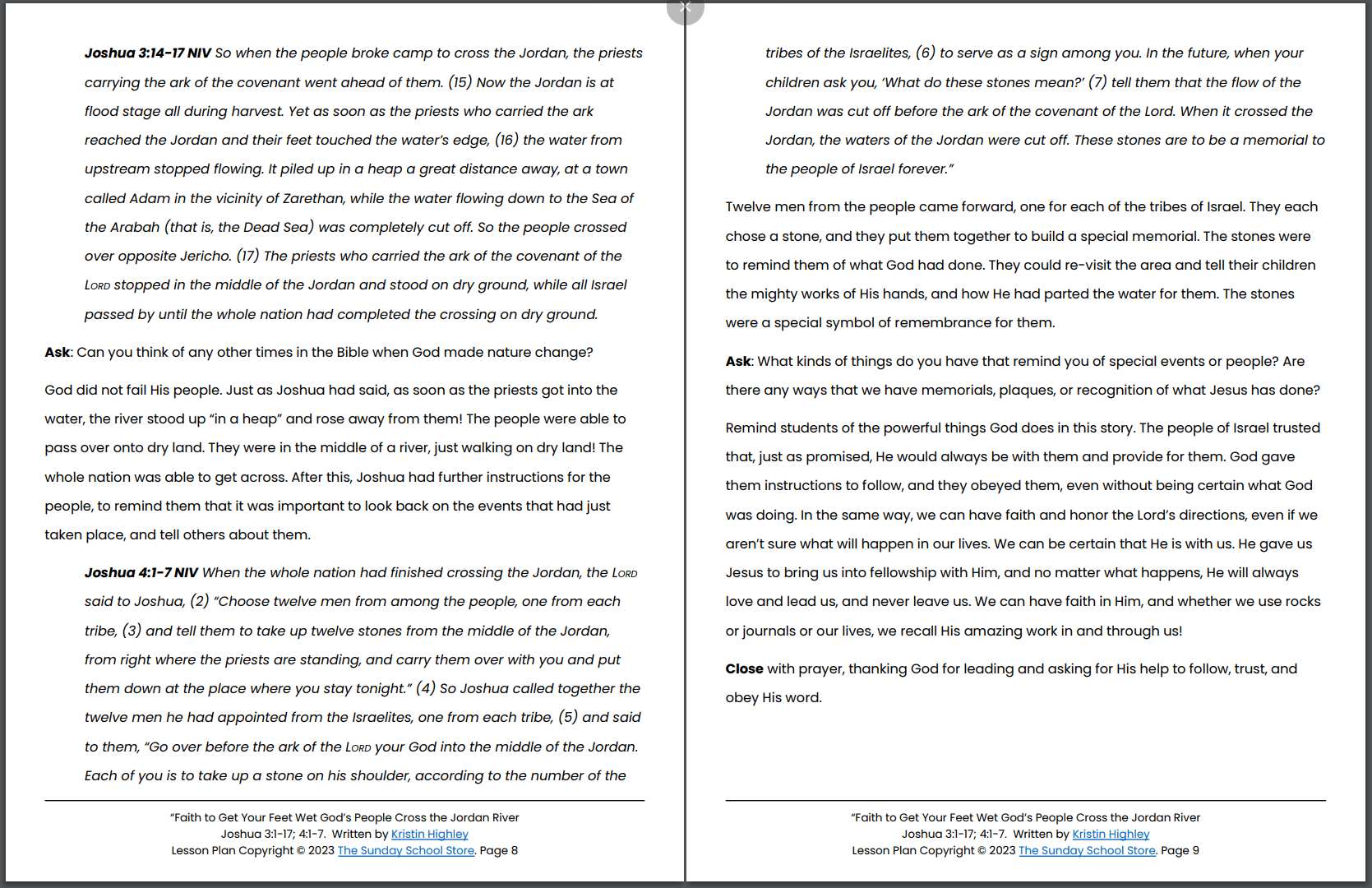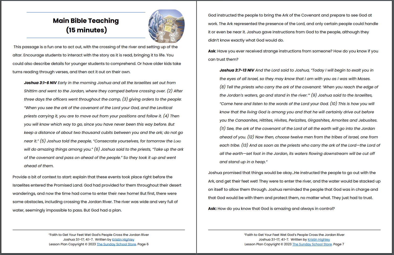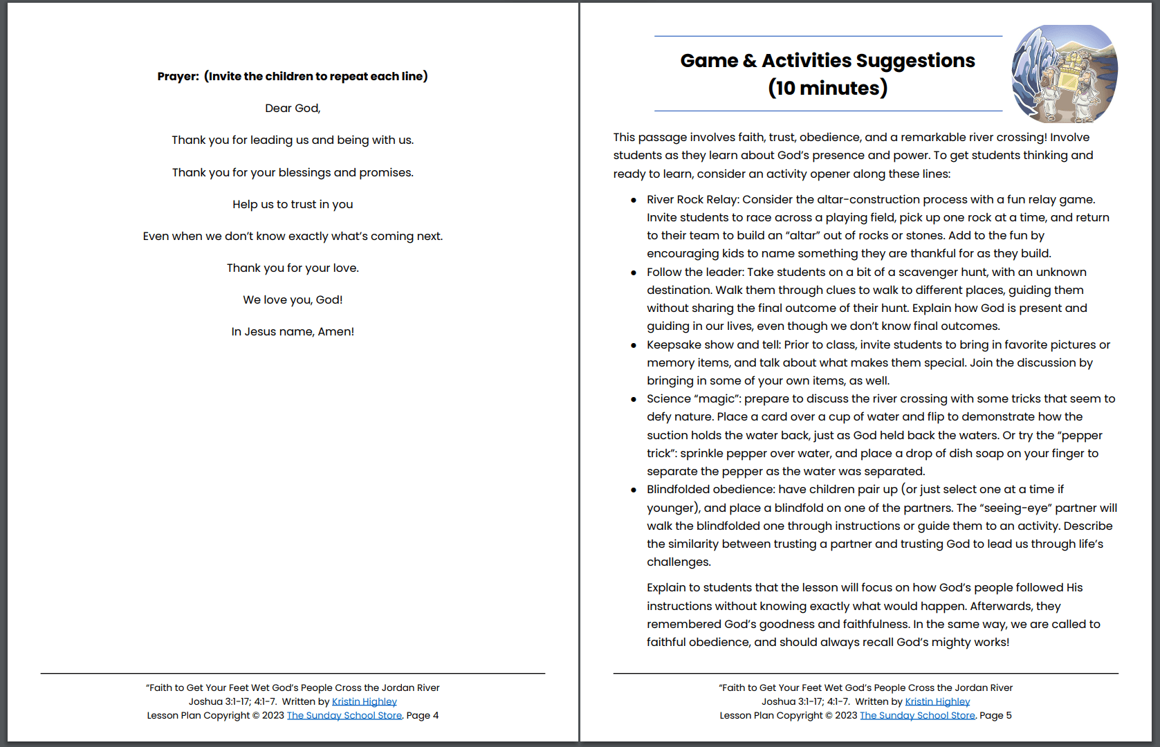 Crossing the Jordan River (Joshua 3:1-17; 4:1-7) Printable Bible Lesson & Sunday School Activities