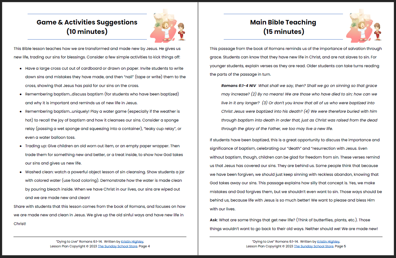 Dying to Sin but Alive in Christ (Romans 6:1-14) Printable Bible Lesson & Sunday School Activities