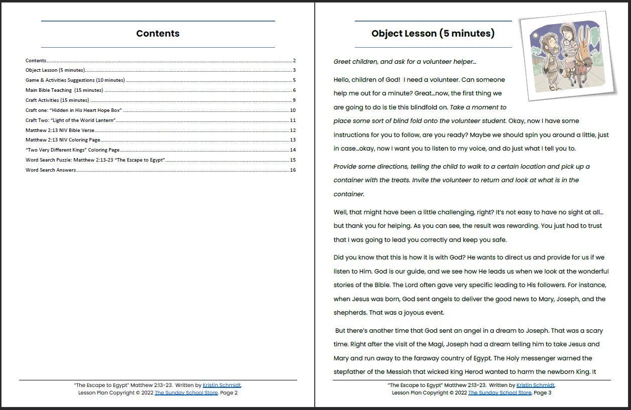 The Escape to Egypt (Matthew 2:13-23) Printable Bible Lesson & Sunday School Activities
