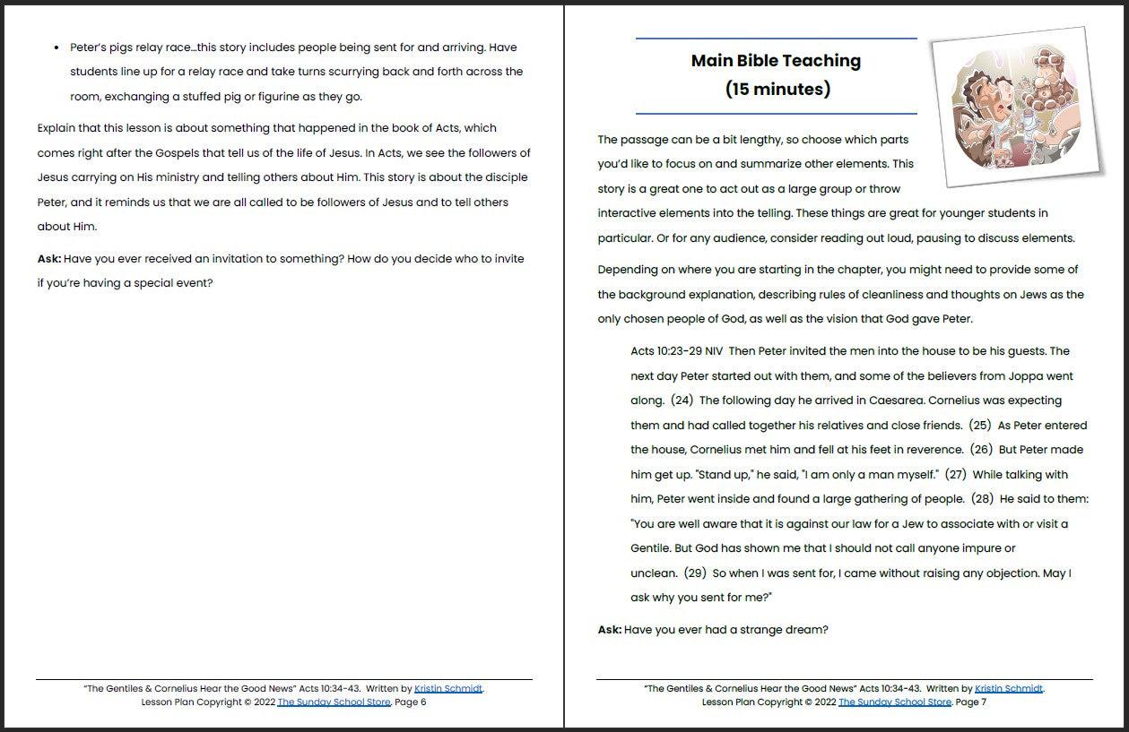 The Gentiles & Cornelius Hear the Good News (Acts 10:34-43) Printable Bible Lesson & Sunday School Activities