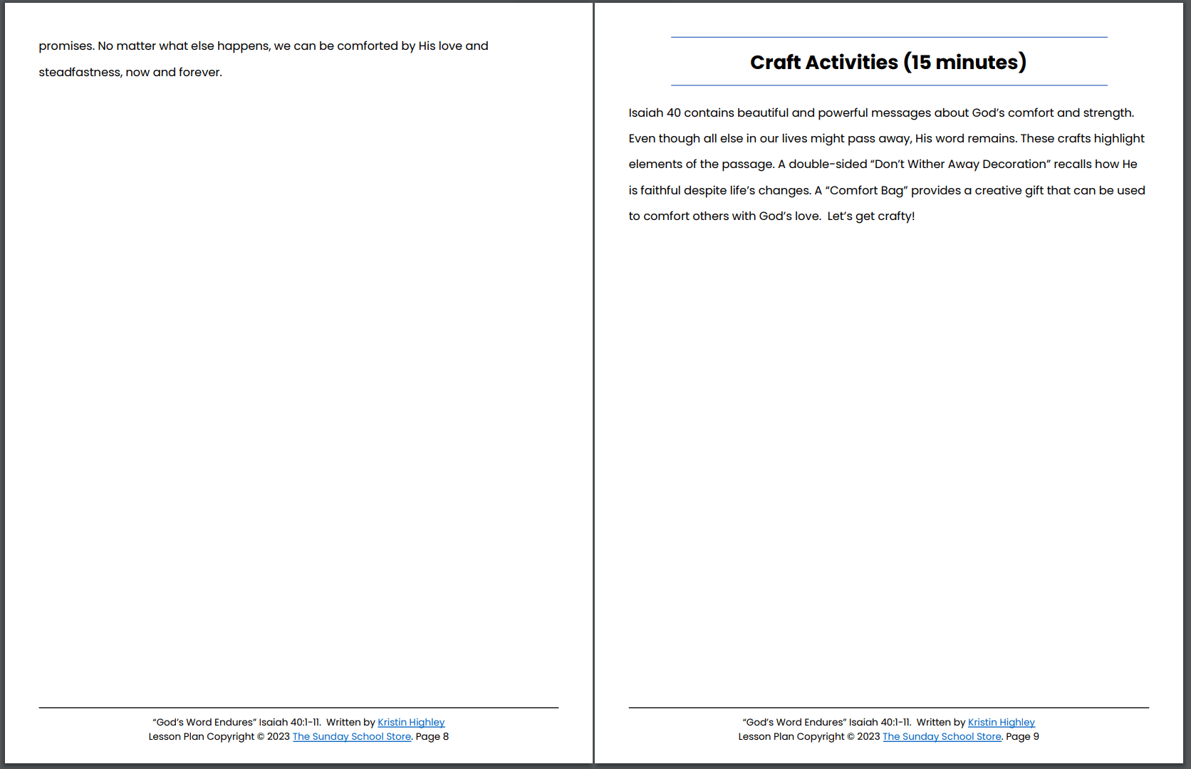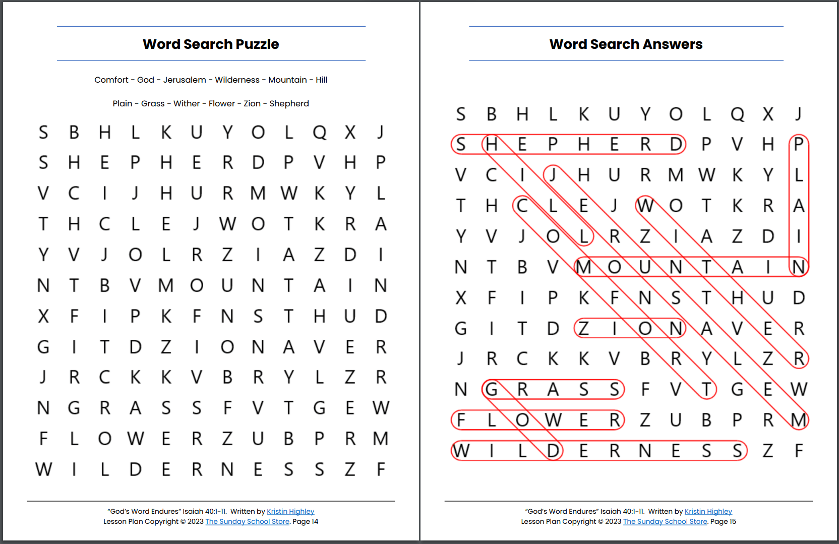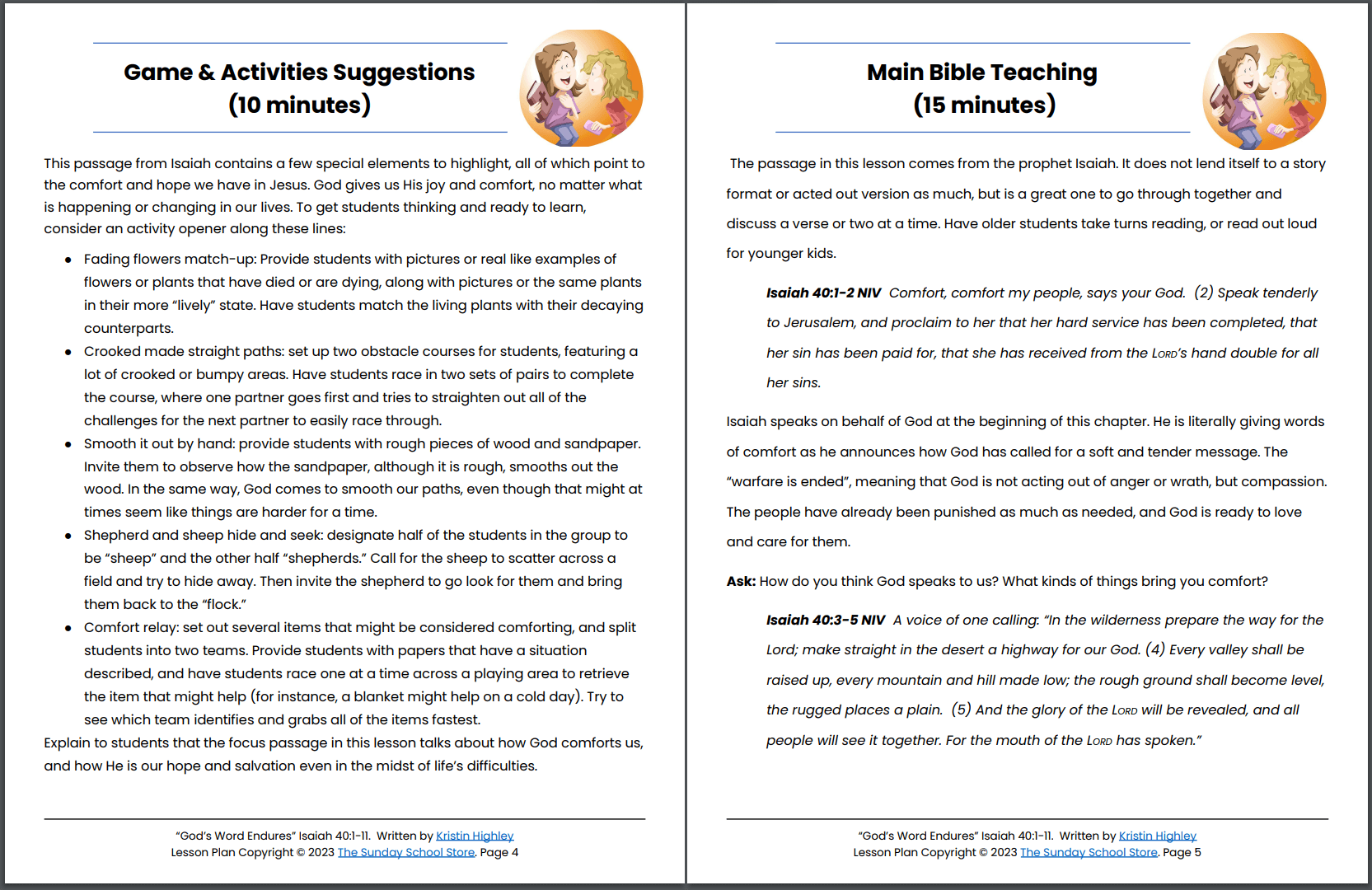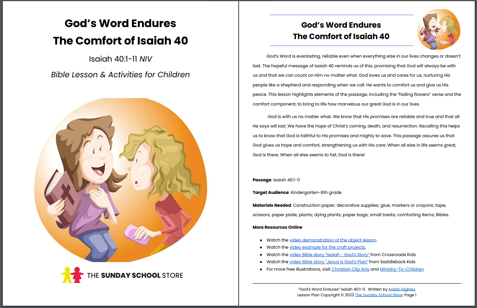 God's Word Endures (Isaiah 40:1-11) Printable Bible Lesson & Sunday School Activities
