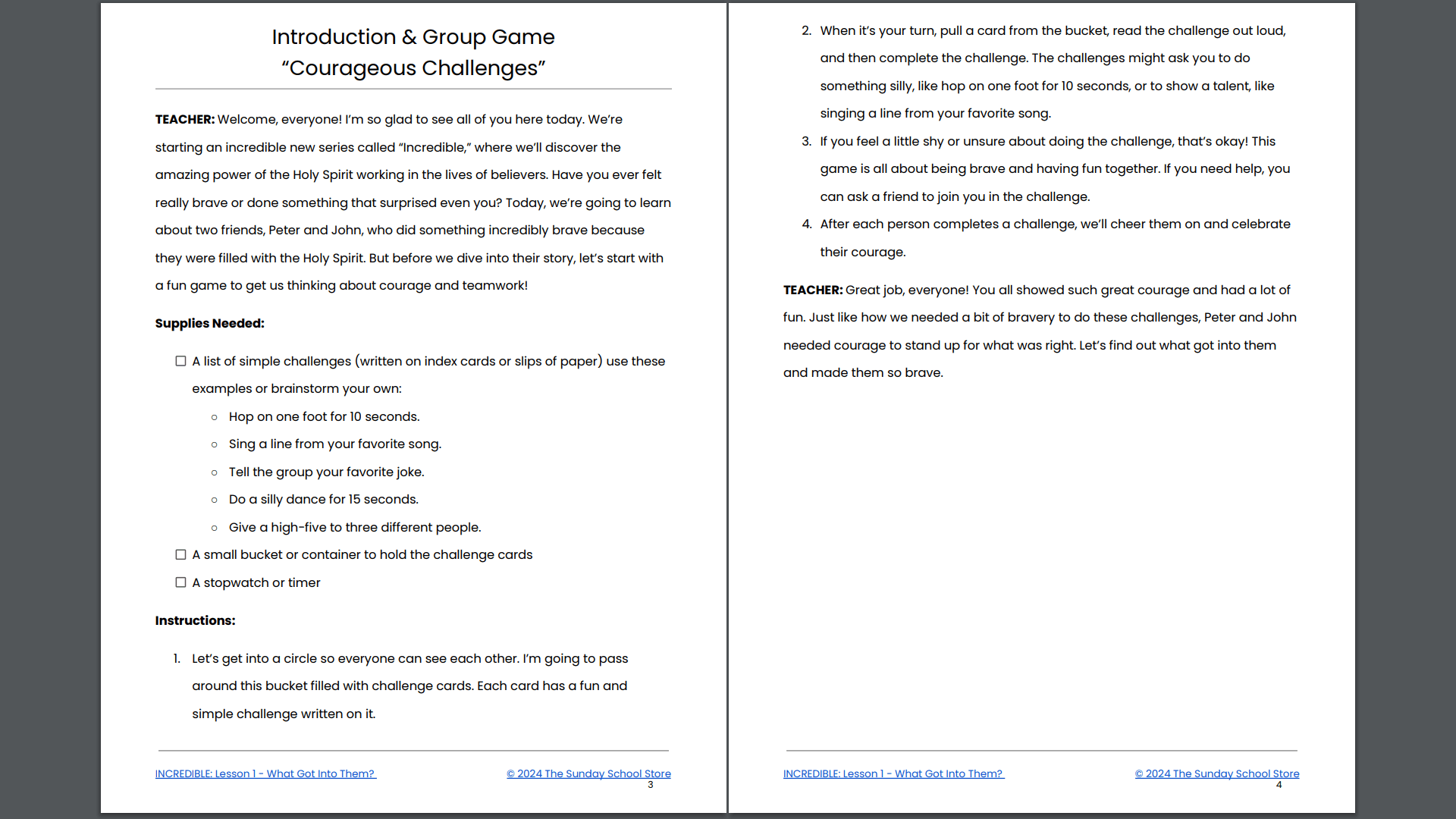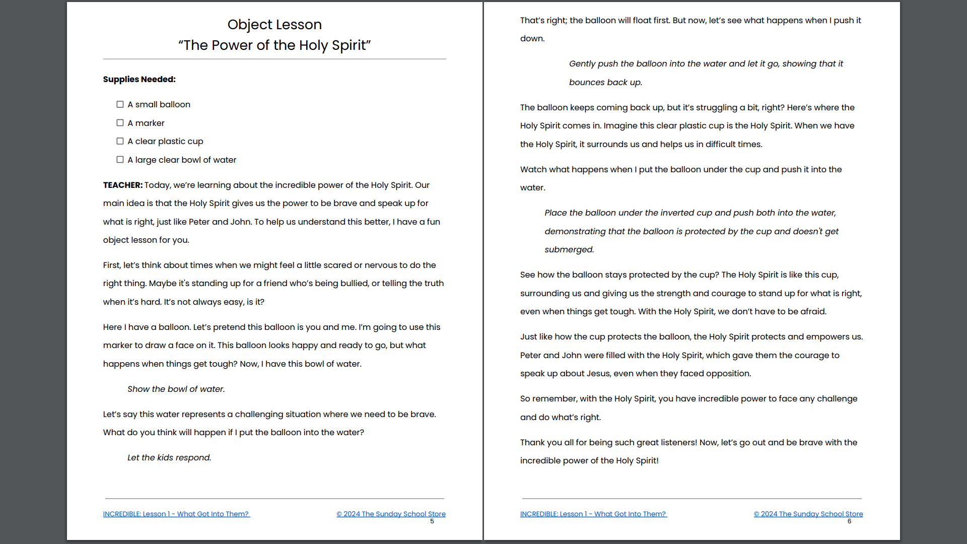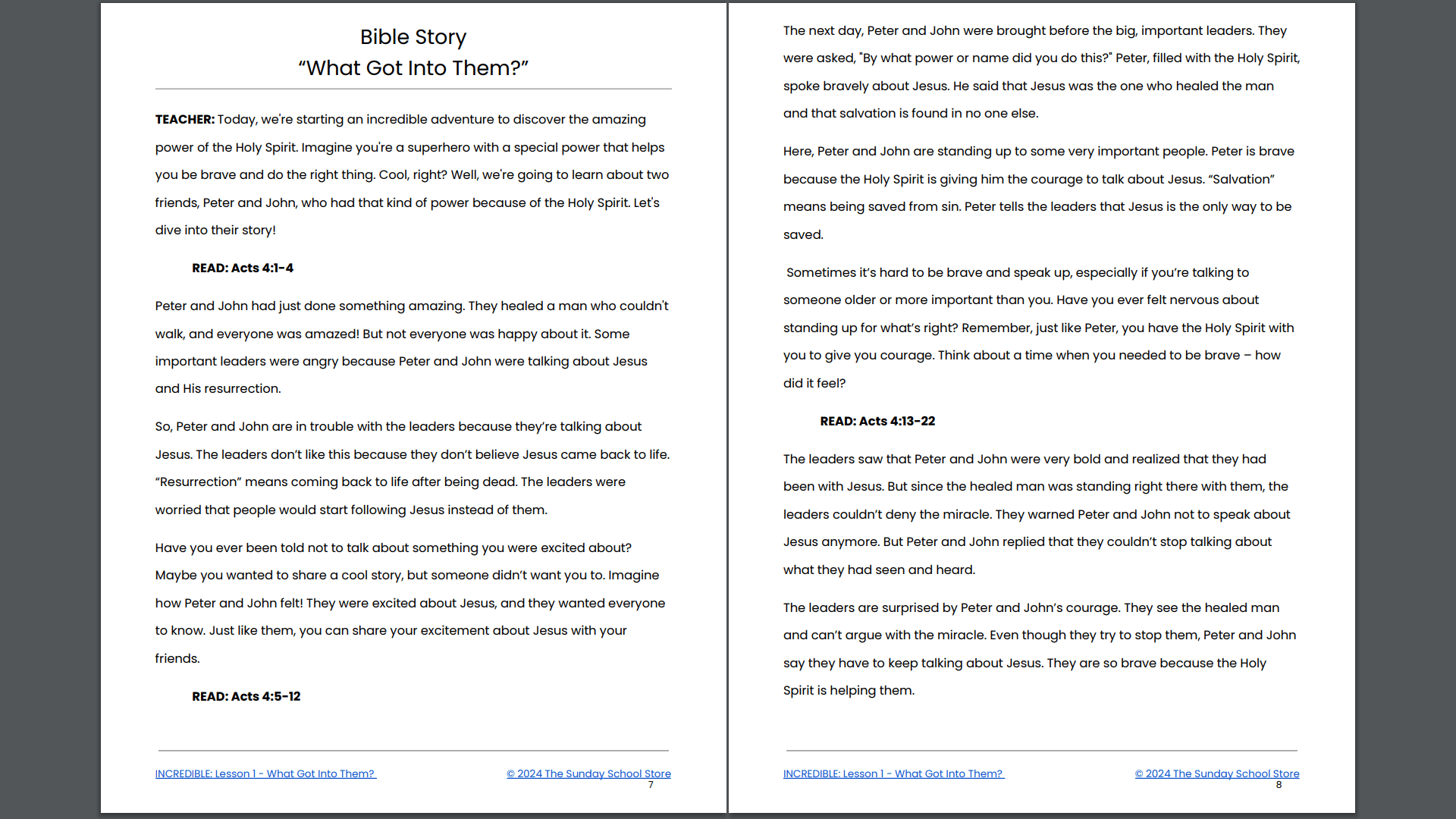 Introducing the "Incredible: 4-Week Children’s Ministry Curriculum" – an exciting lesson series for children on how the Holy Spirit empowers them to be brave, kind, and transformative. Through engaging stories from the Book of Acts, kids will learn how ordinary people, filled with the Holy Spirit, achieved incredible things for God's kingdom. By the end of this series, children will have a deeper understanding of how the Holy Spirit works in their lives, equipping them with the incredible power to overcome challenges, share God's love, and grow in their faith. Watch your kids be inspired and transformed, ready to positively impact their world!