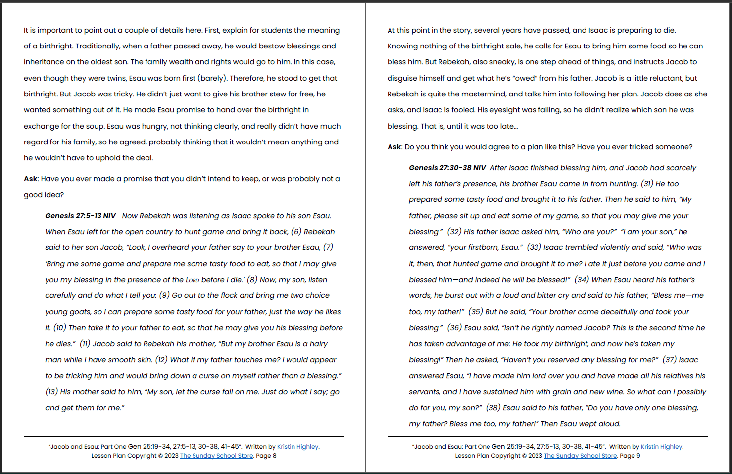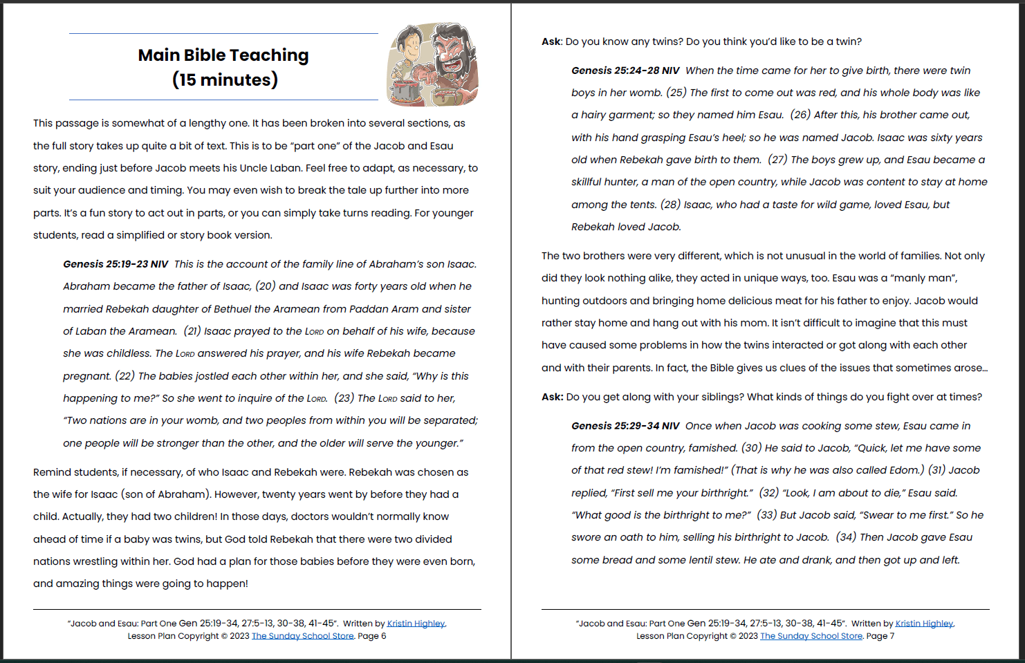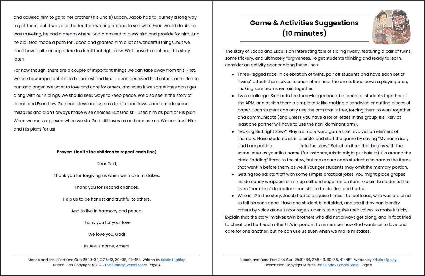 Jacob Tricks Esau (Genesis 25, 27) Printable Bible Lesson & Sunday School Activities