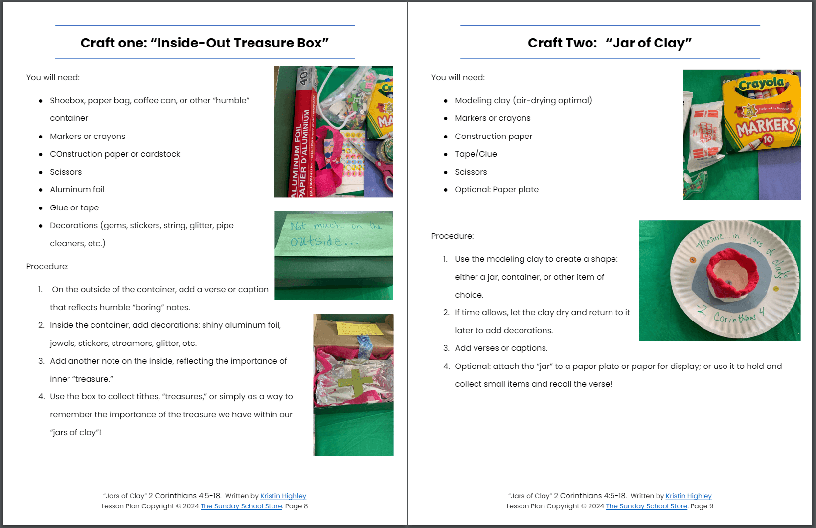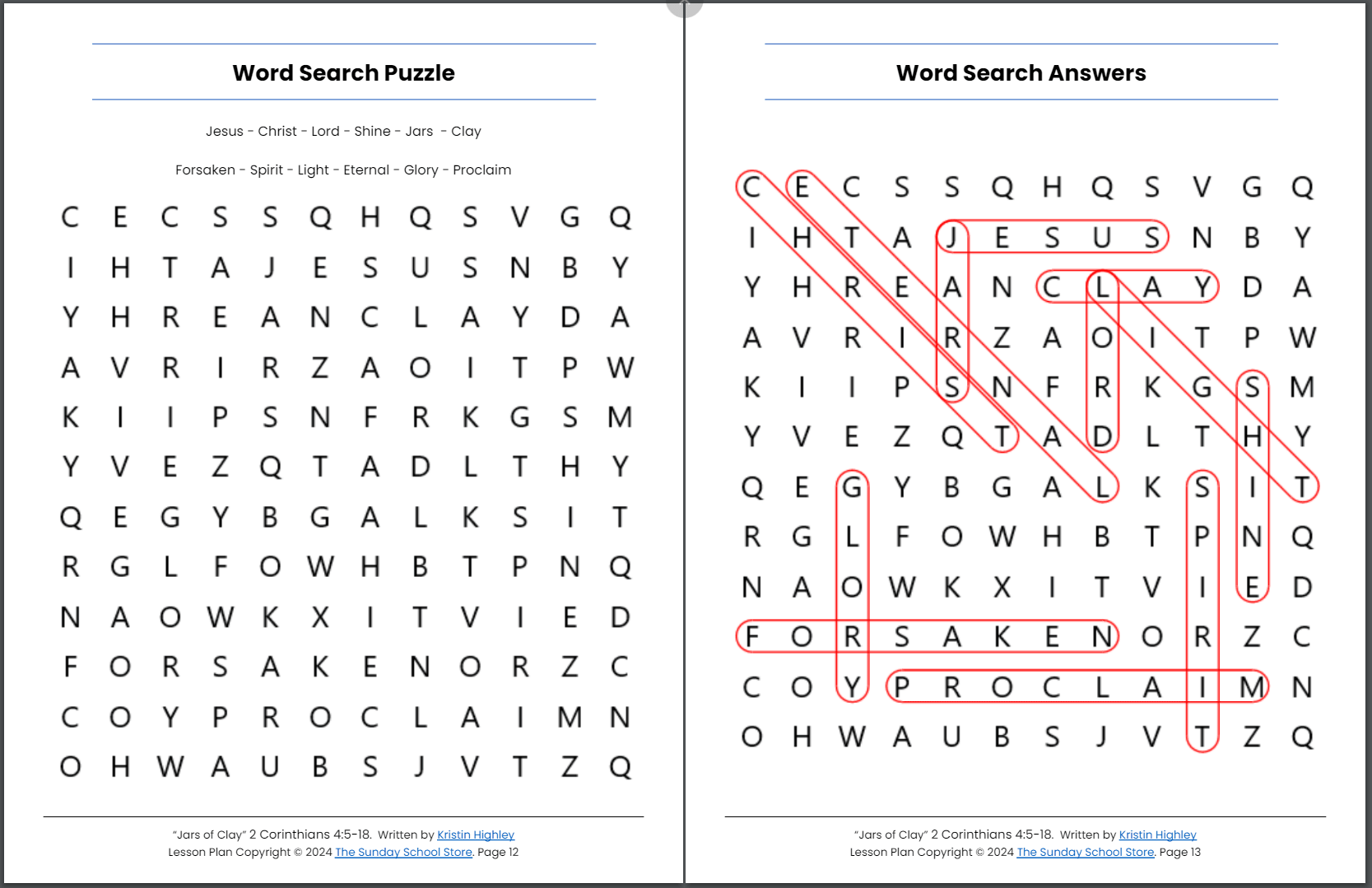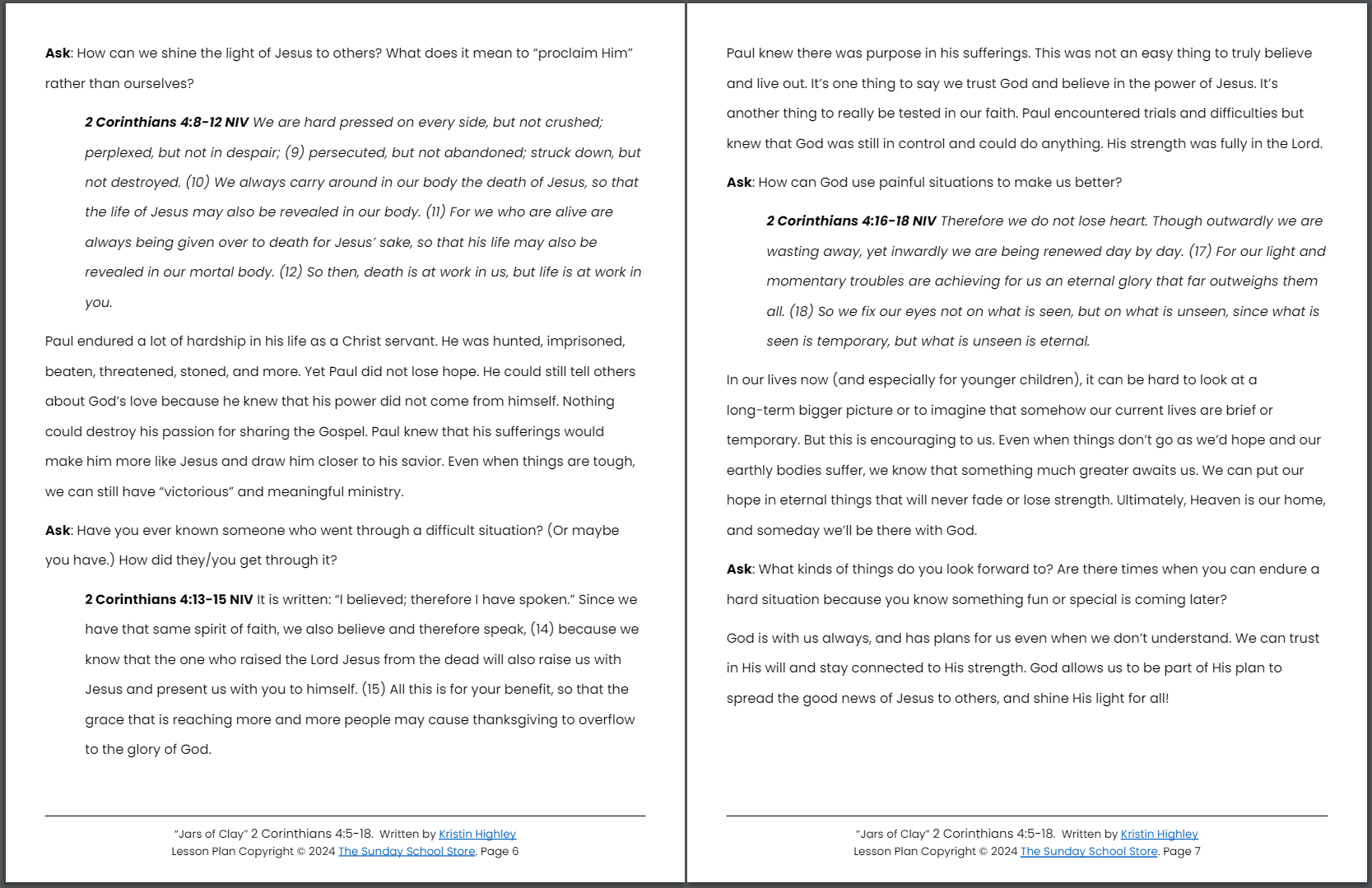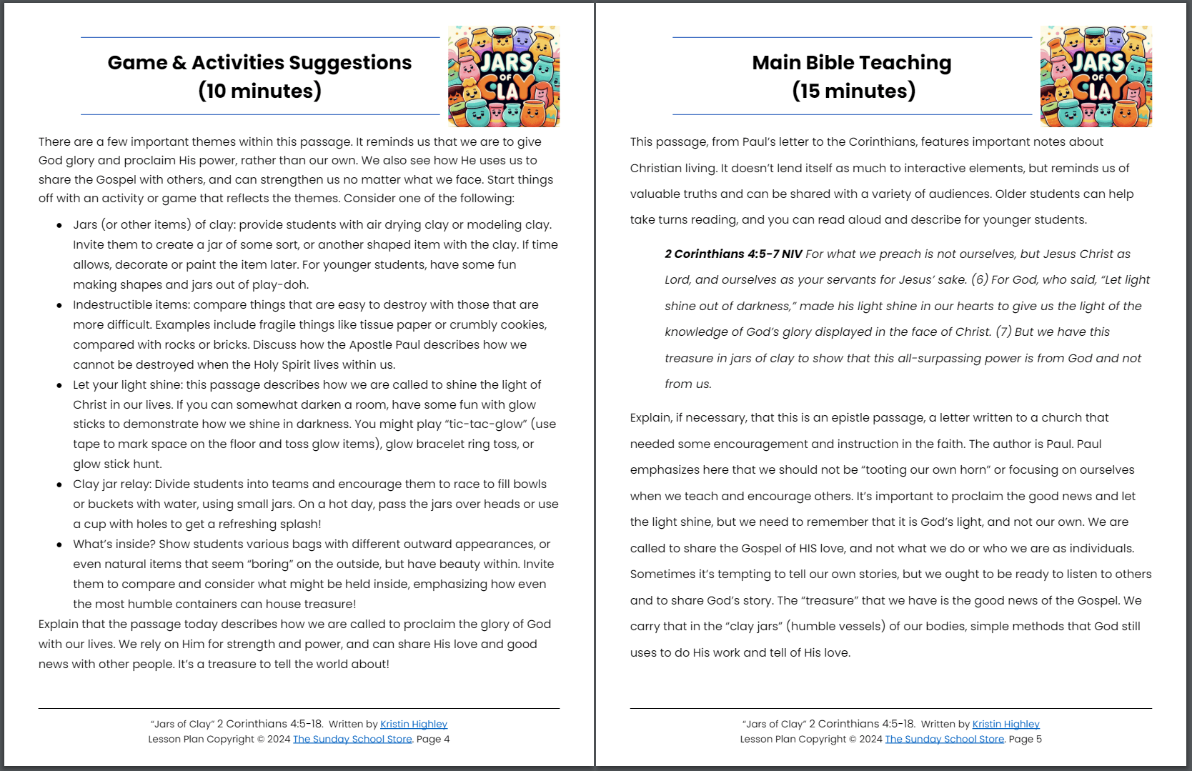 Jars of Clay (2 Corinthians 4:5-18) Sunday School Lesson & Activities for Kids PDF