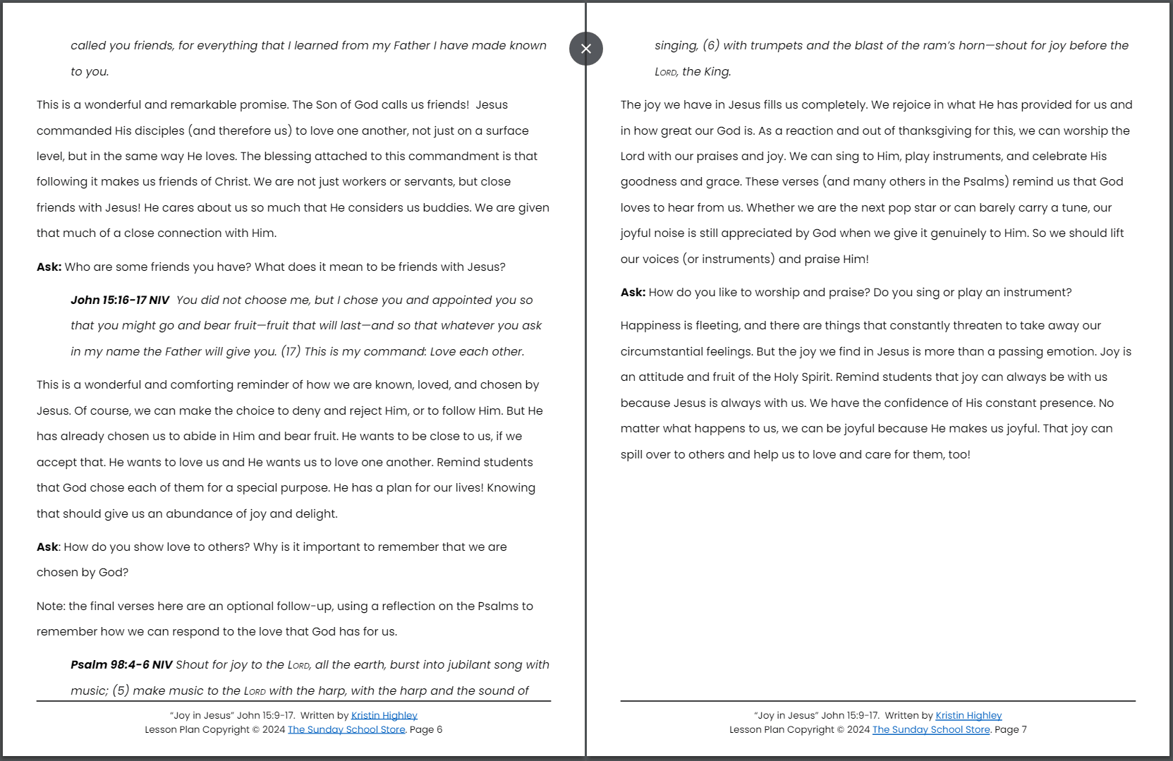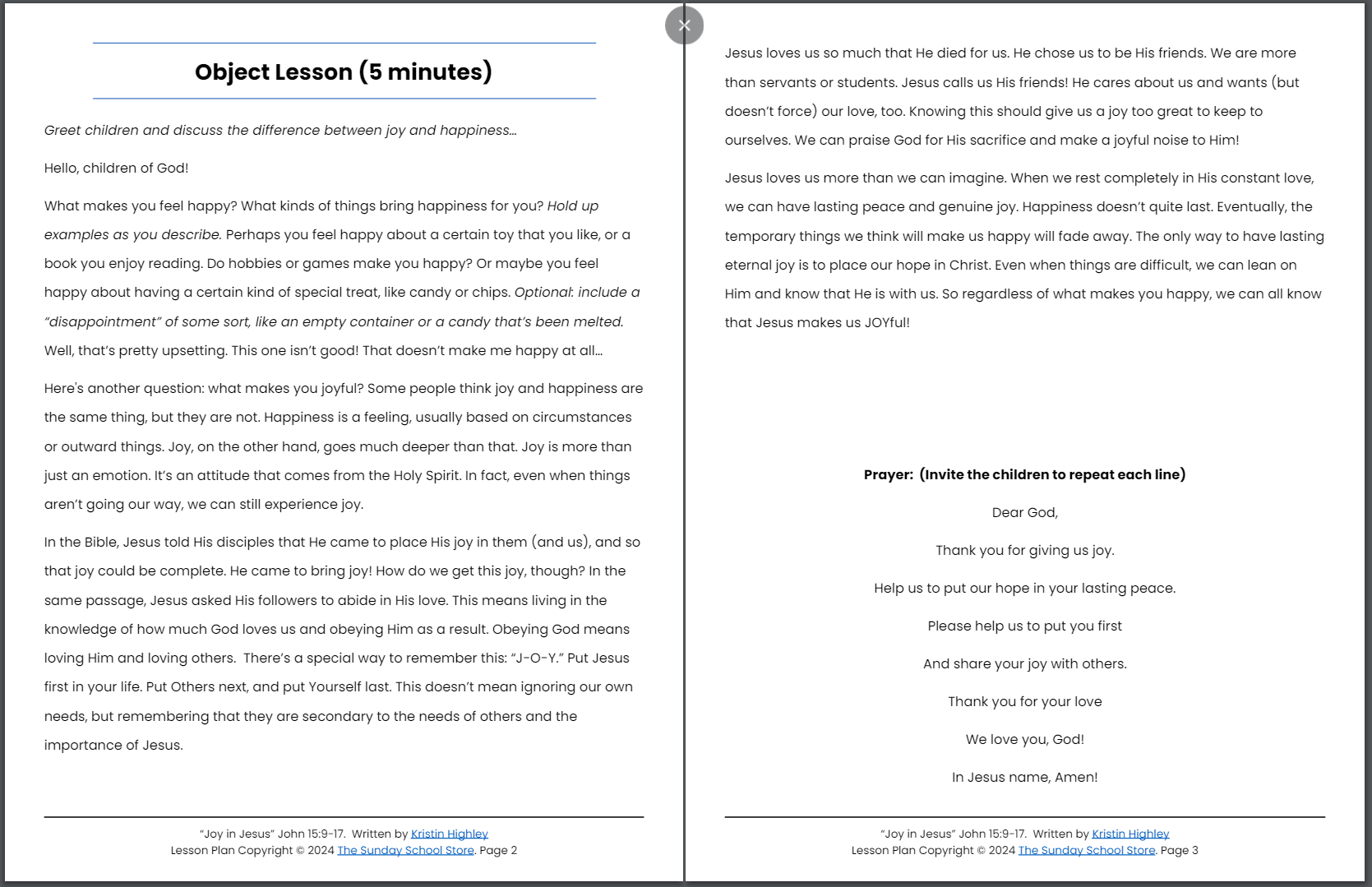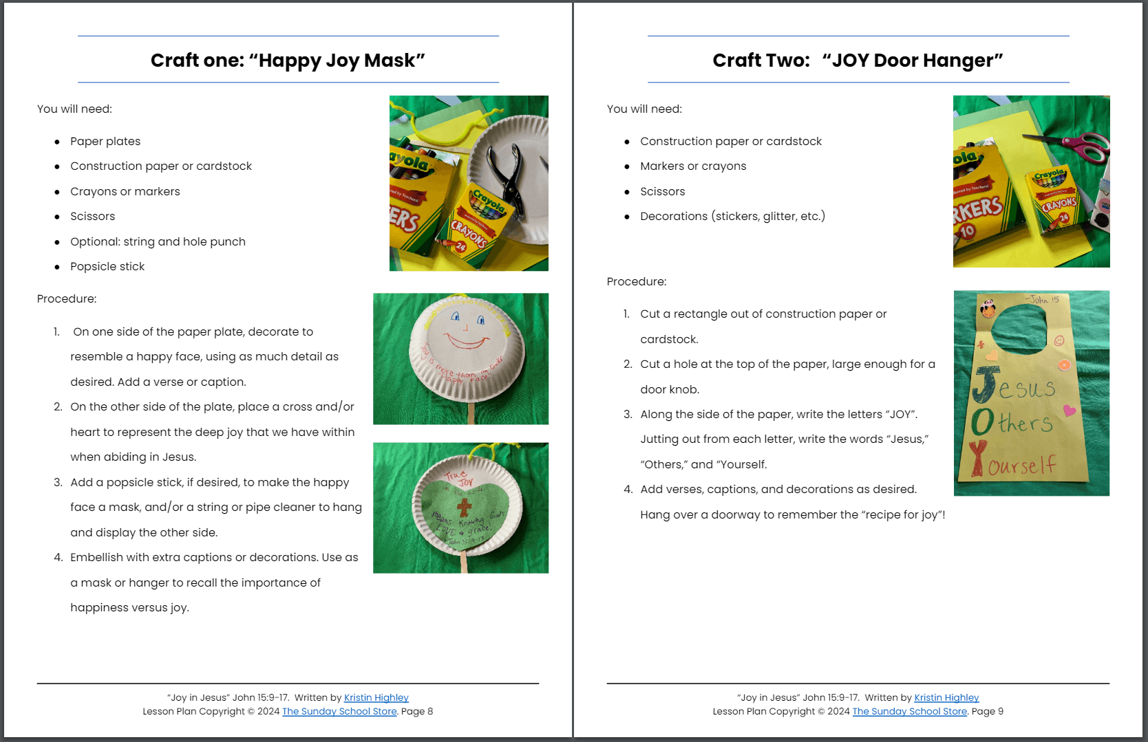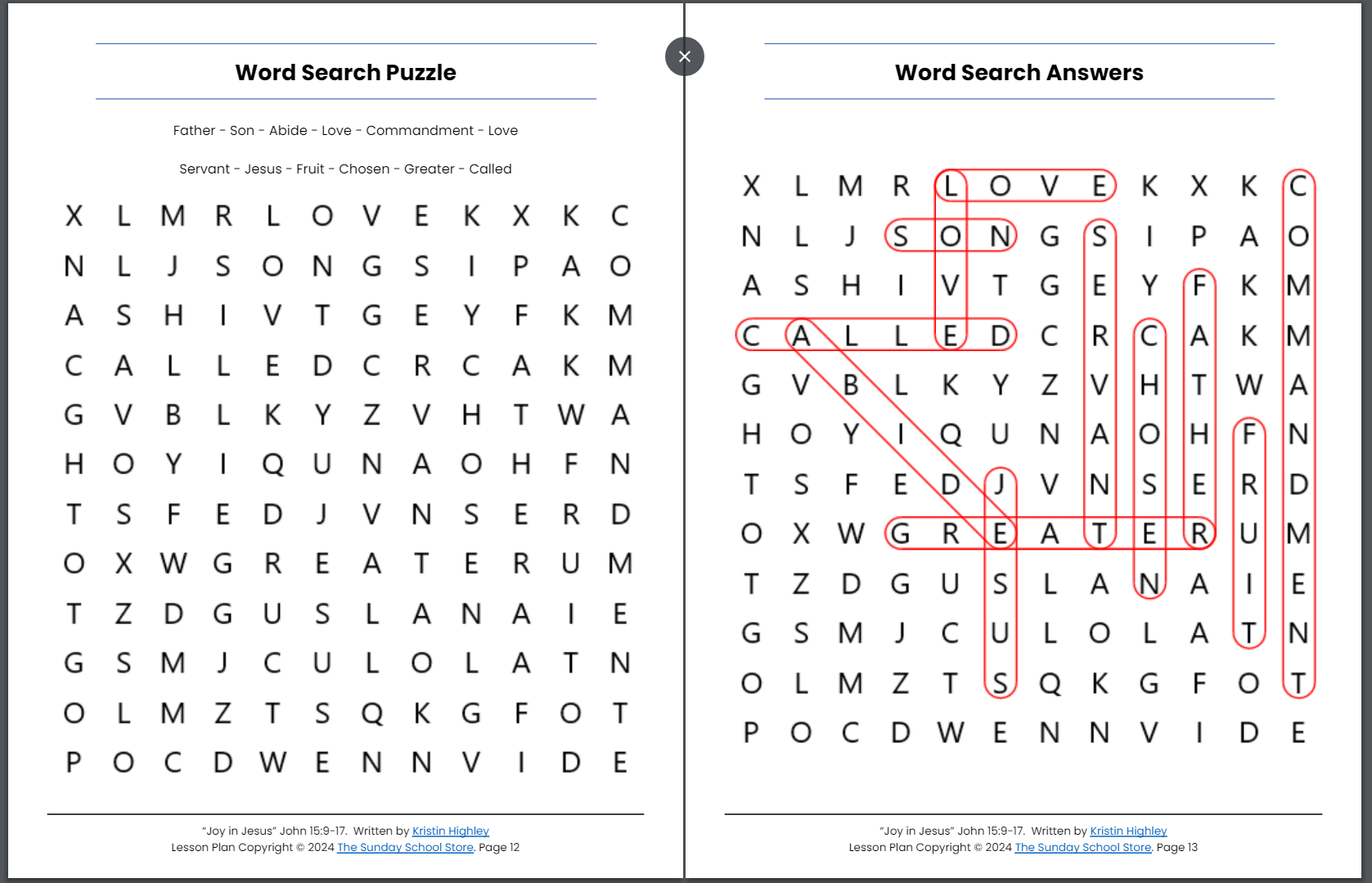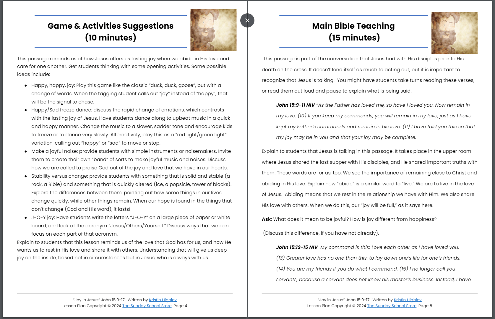 Joy in Jesus (John 15:9-17) Kids' Bible Lesson & Sunday School Activities PDF