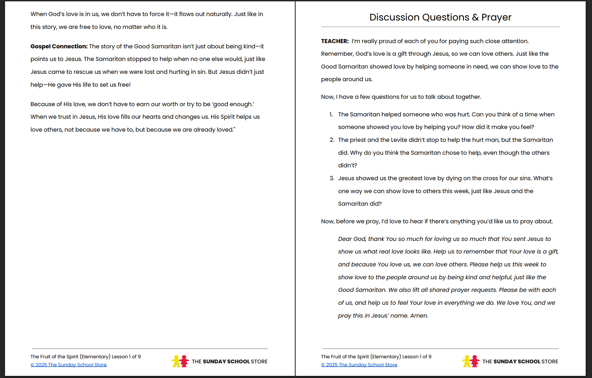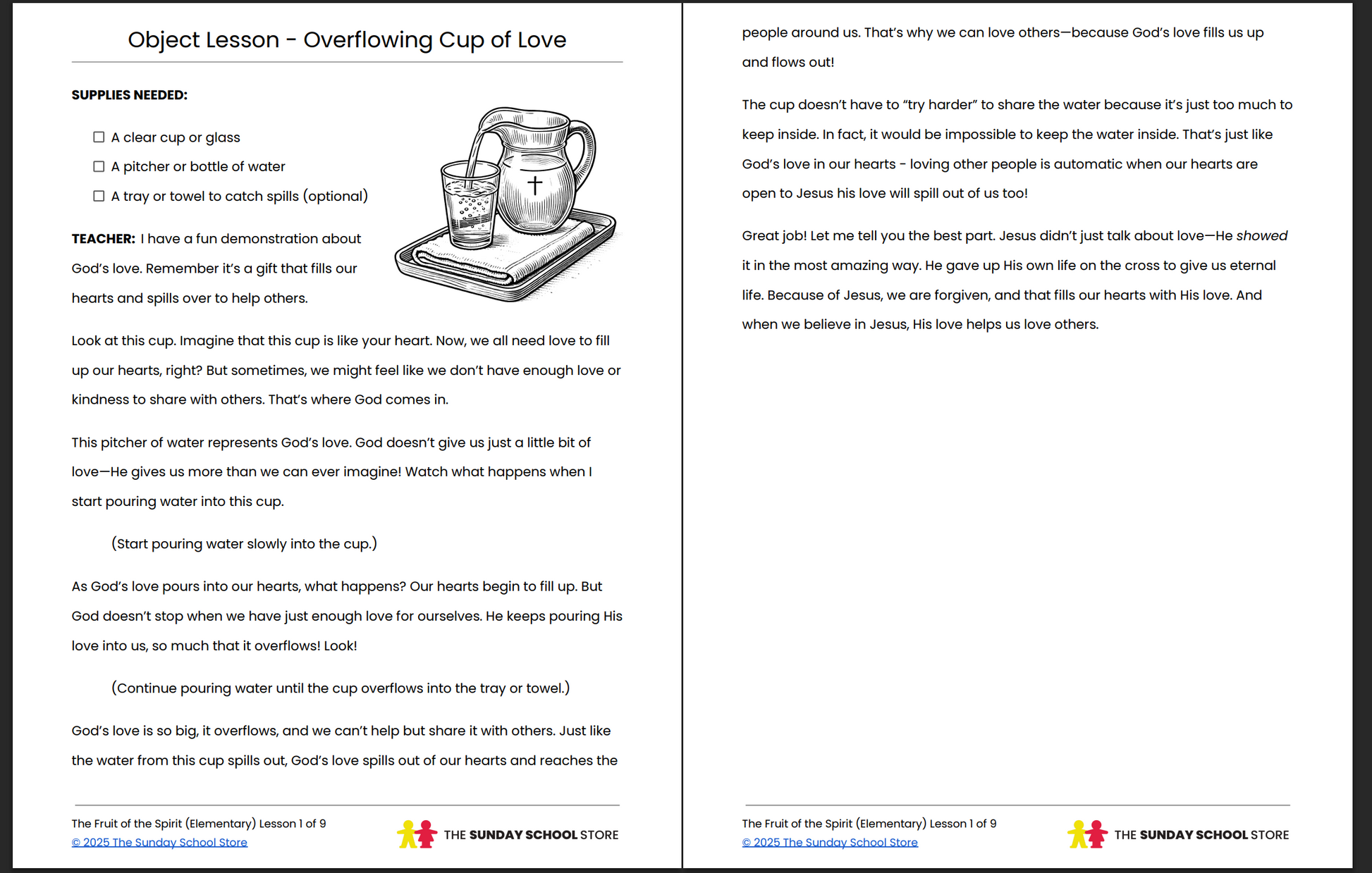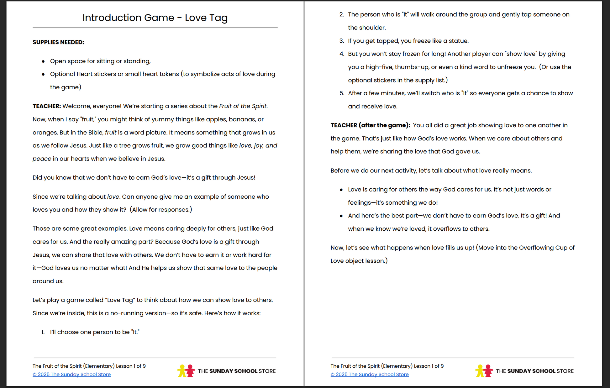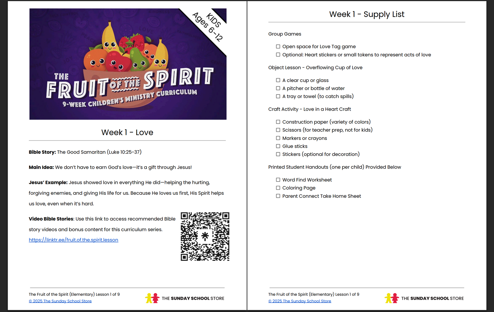 We hope you enjoy this sample and will consider buying the complete Fruit of the Spirit: 9-Week Curriculum.