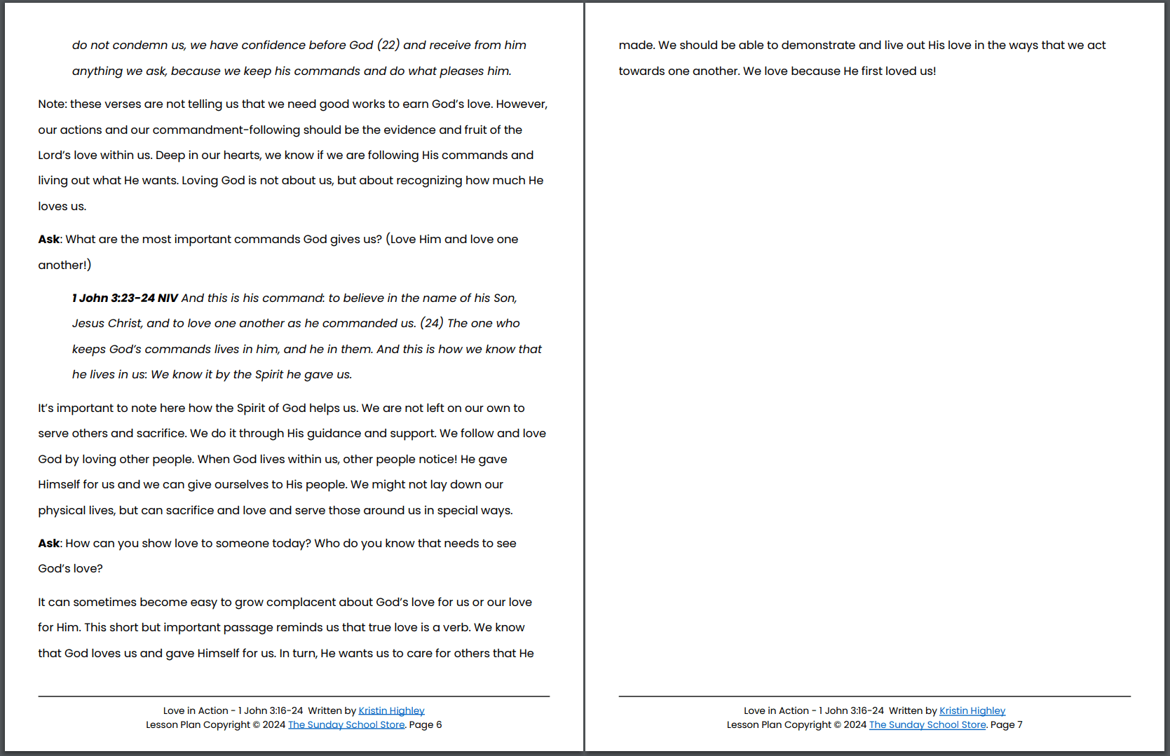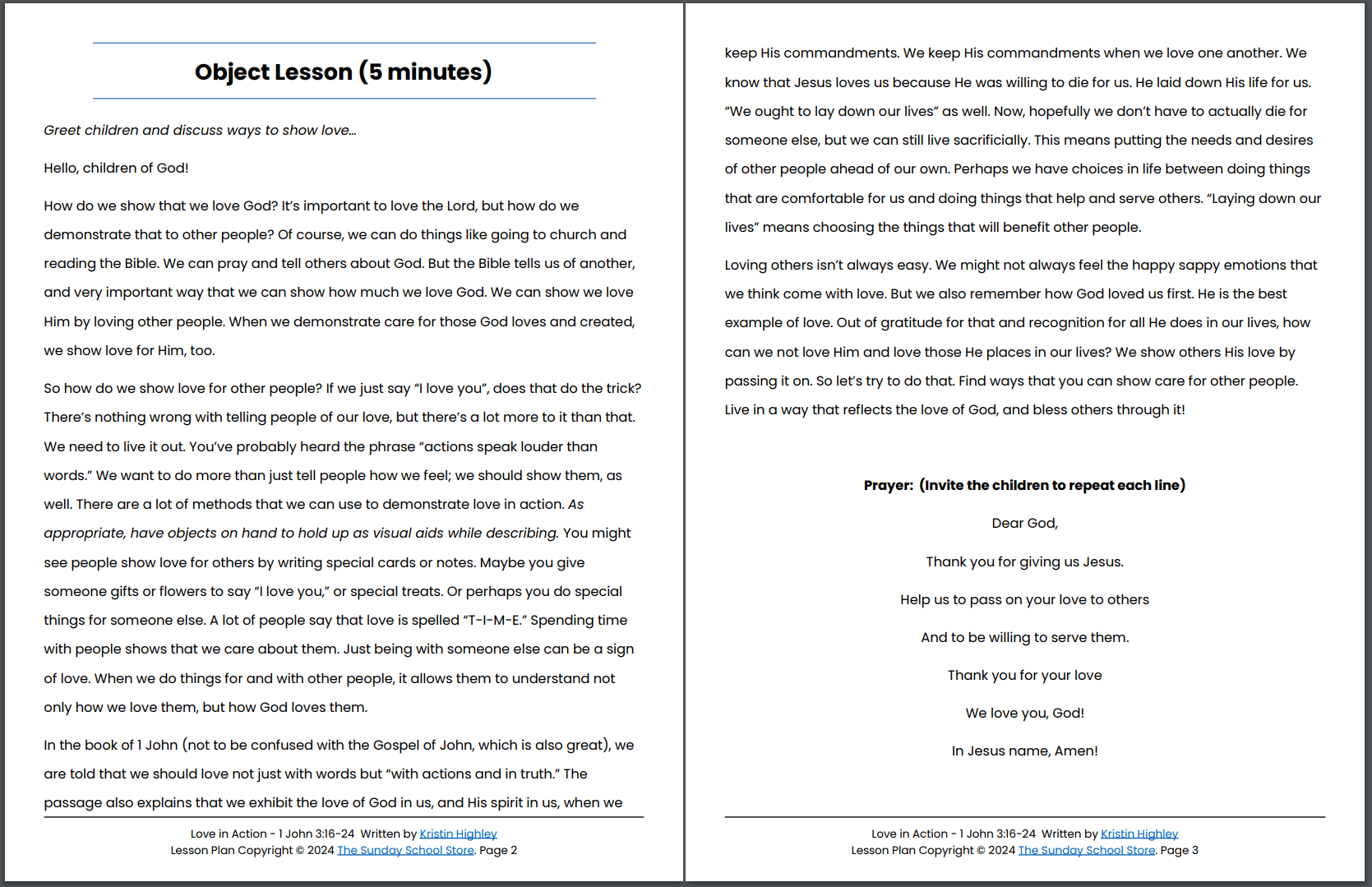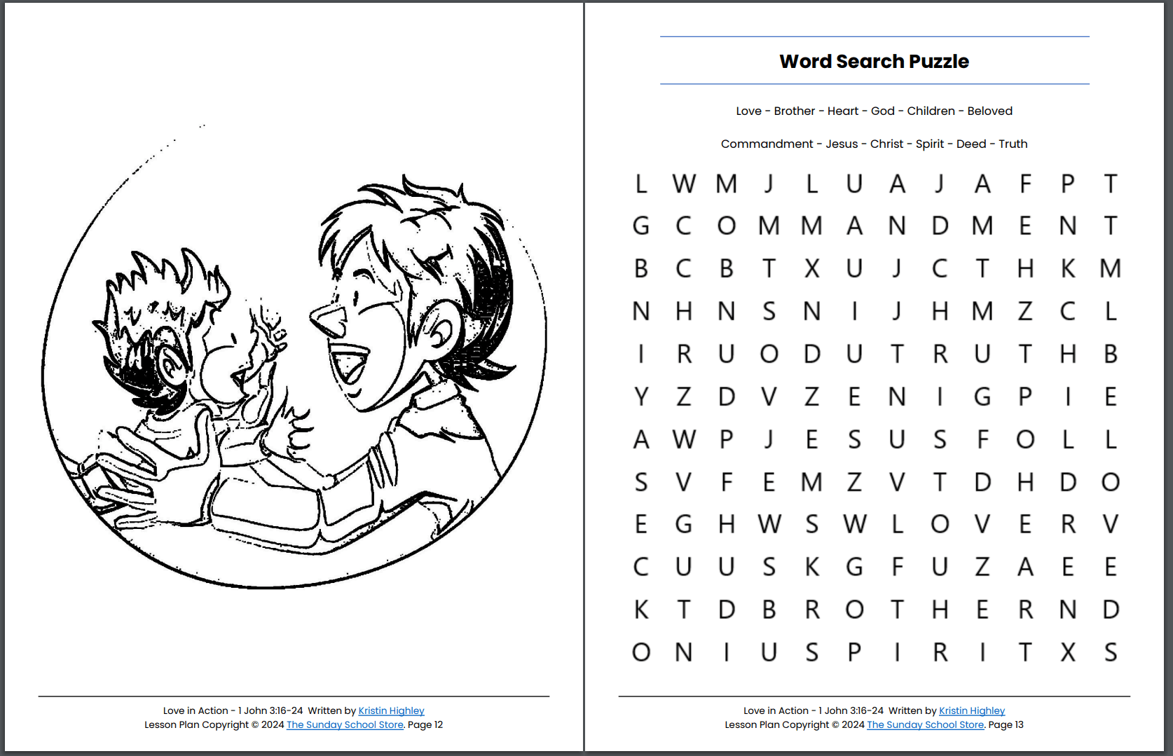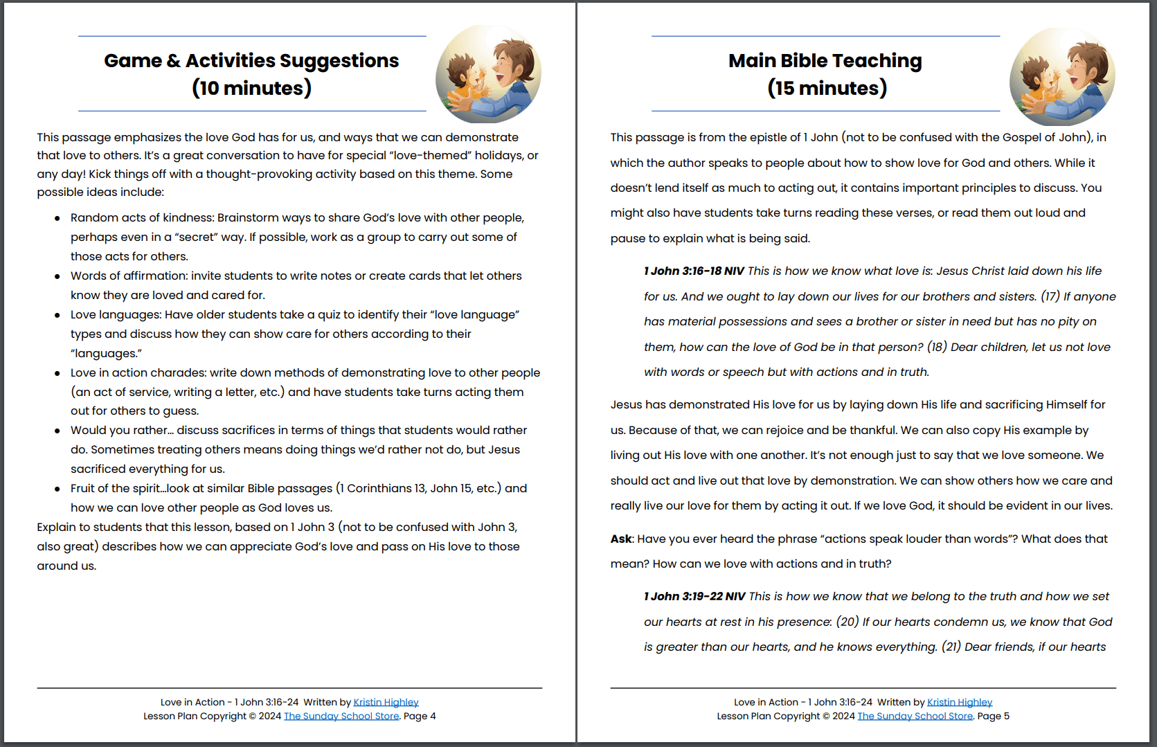 Love in Action (1 John 3:16-24) Kids' Bible Lesson & Sunday School Activities PDF