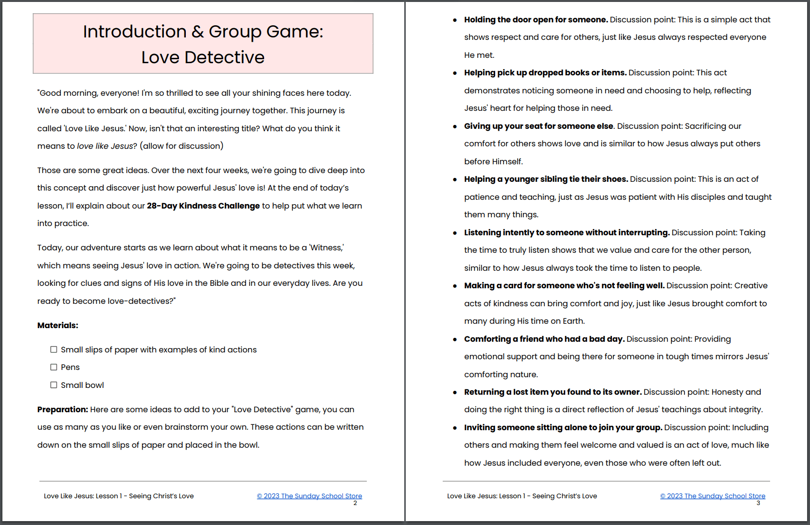 Love Like Jesus 💖 4-Lesson Sunday School Curriculum for Kids & 28-Day Kindness Challenge