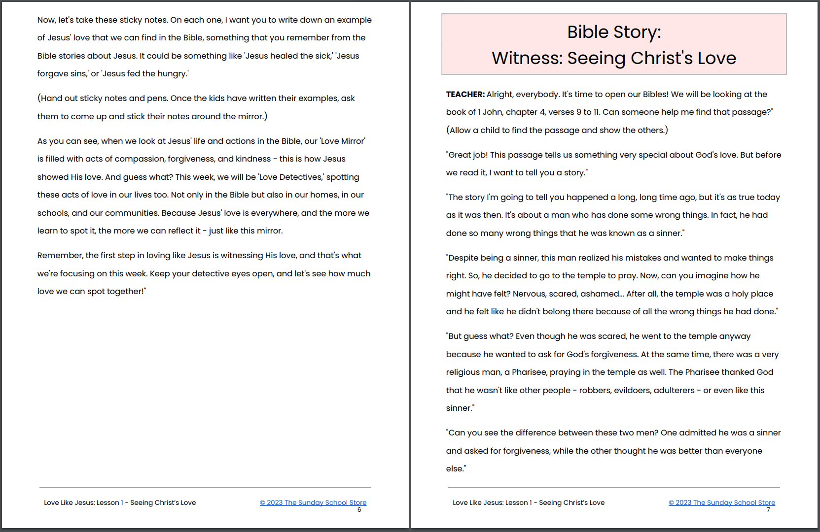 "Love Like Jesus: 4-Week Curriculum and Kindness Challenge" is an exciting and hands-on program for kids to learn about the deep love of Jesus Christ. Over four weeks, kids will go on a journey where they'll see Jesus' love in Bible stories and in their daily lives, show His love through kind actions, talk about His love to others, and celebrate His love through worship and art. This program is more than information; we want to help kids be transformed by sharing Jesus' love. We have included a 28-day challenge that encourages kids to show this love in real, everyday ways. It's more than just a program; it's a chance for kids to really experience the love of Jesus.