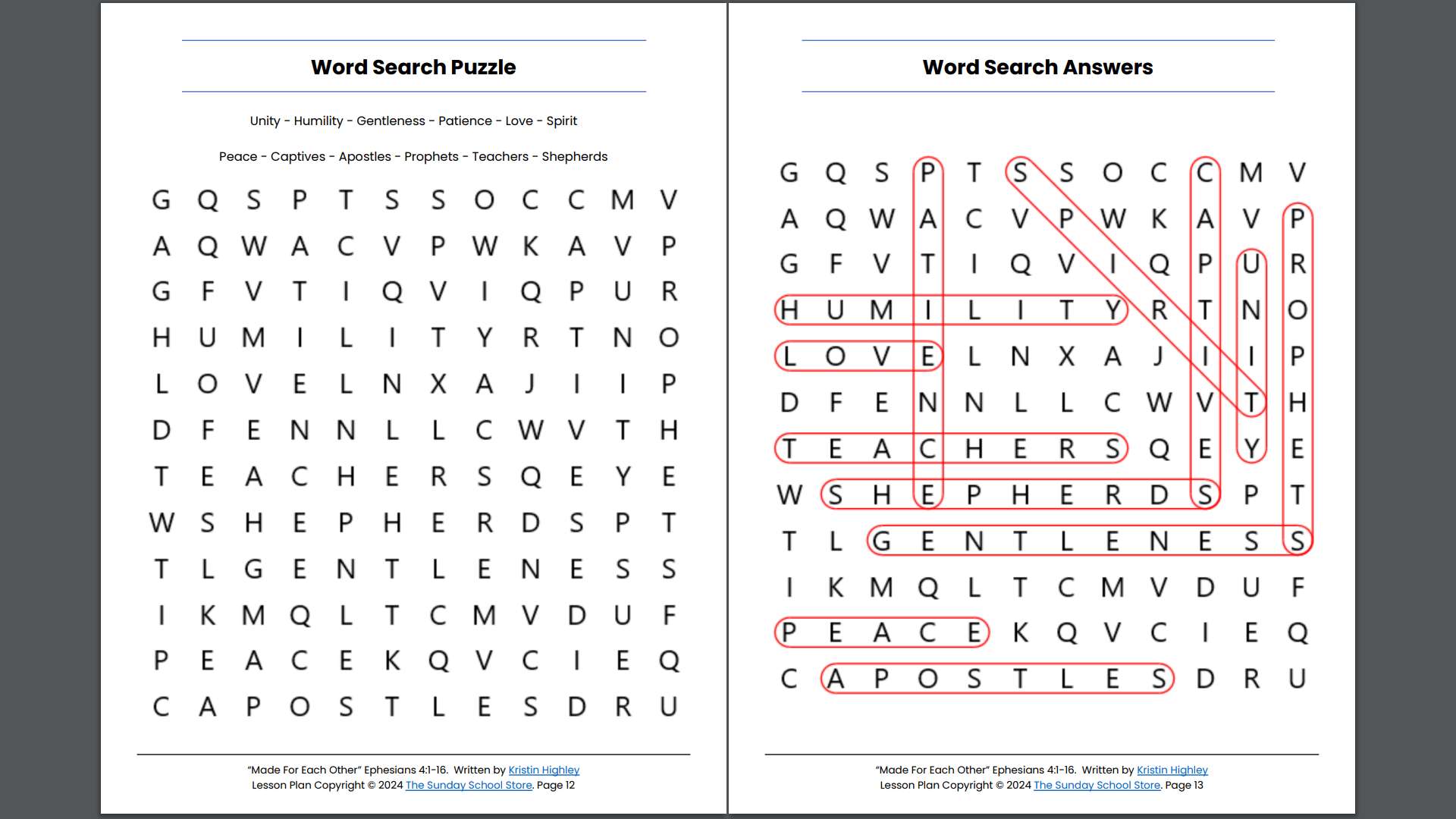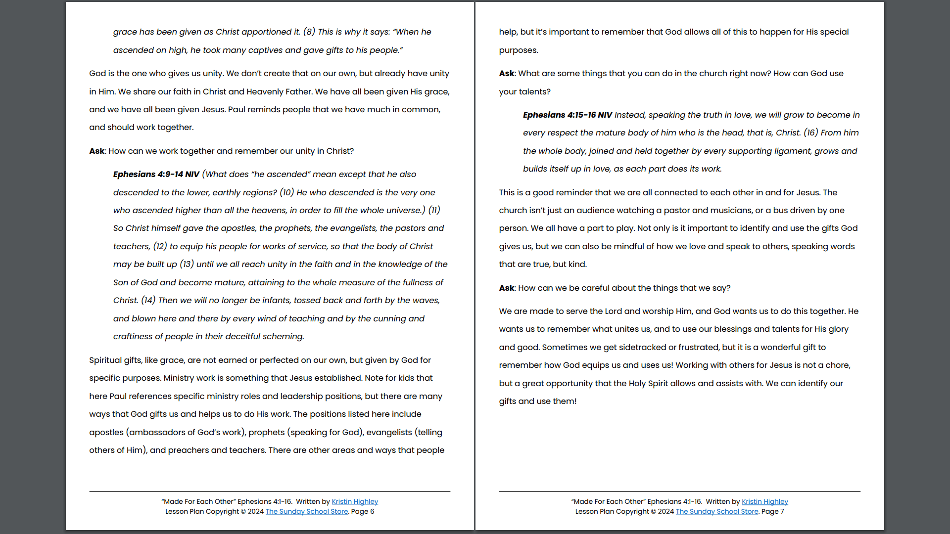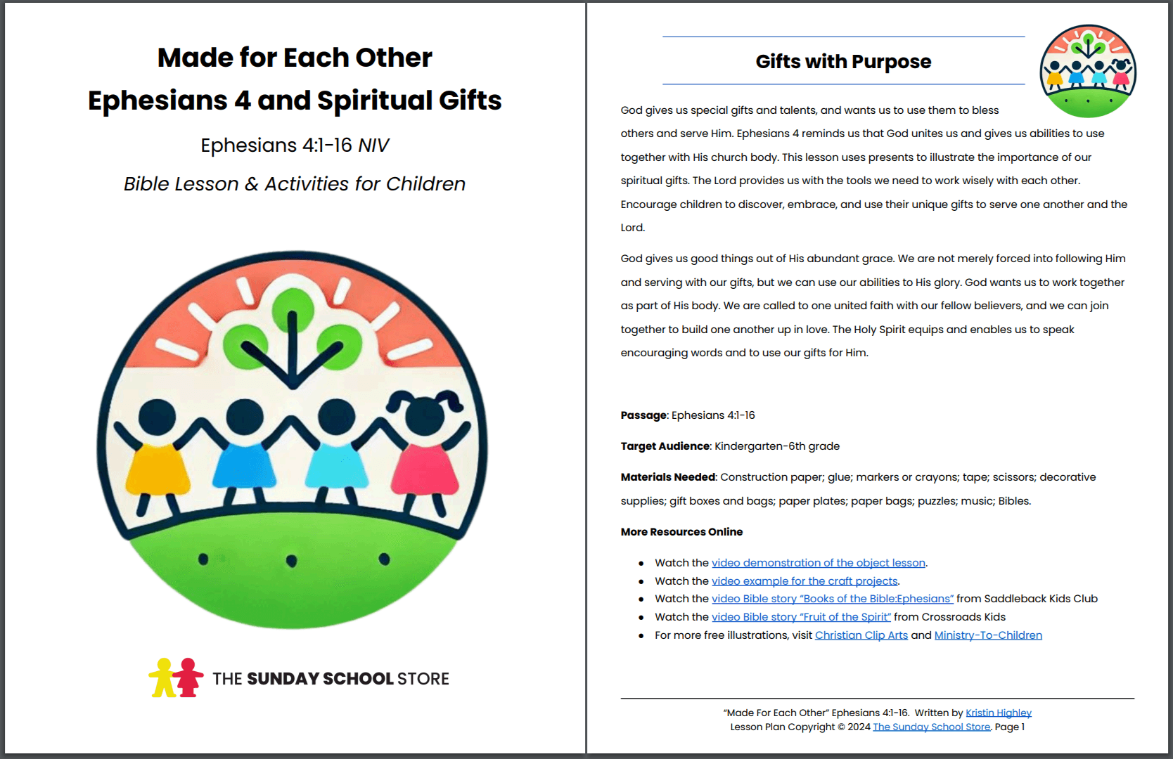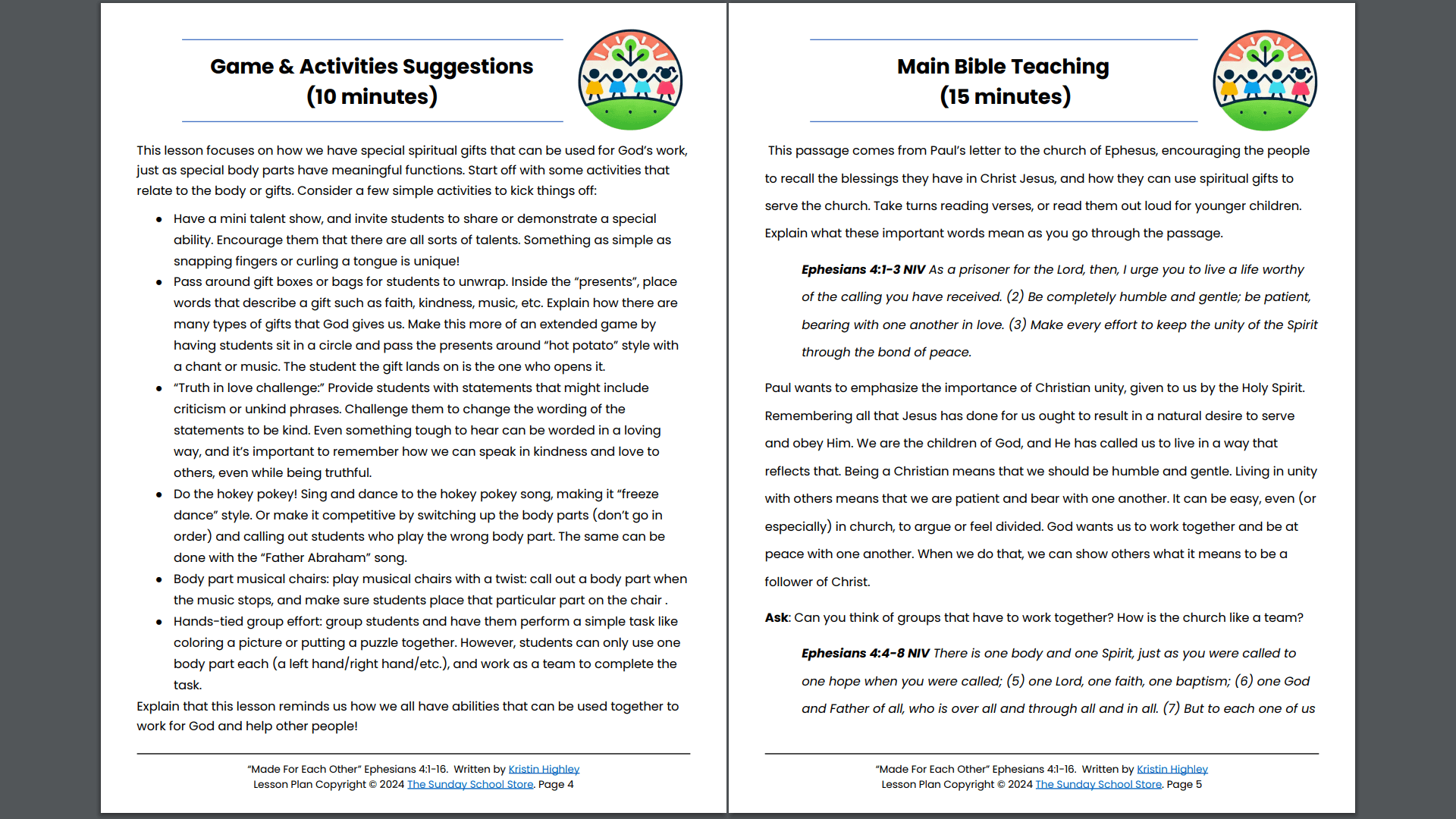 Made for Each Other (Ephesians 4:1-16) Sunday School Lesson & Activities for Kids PDF