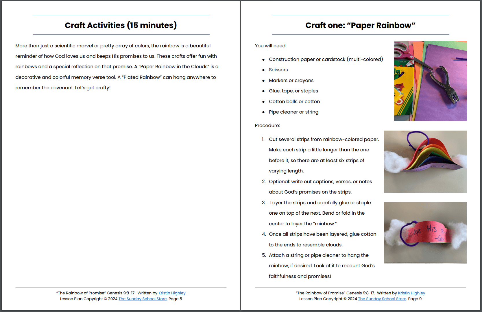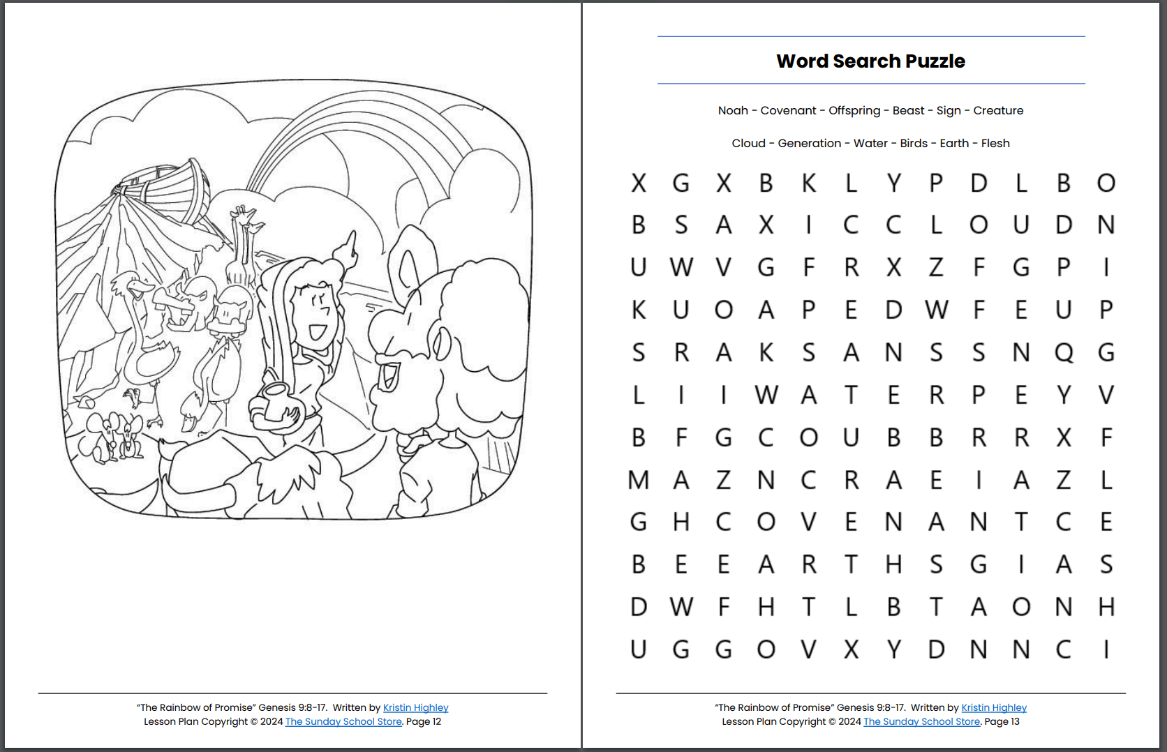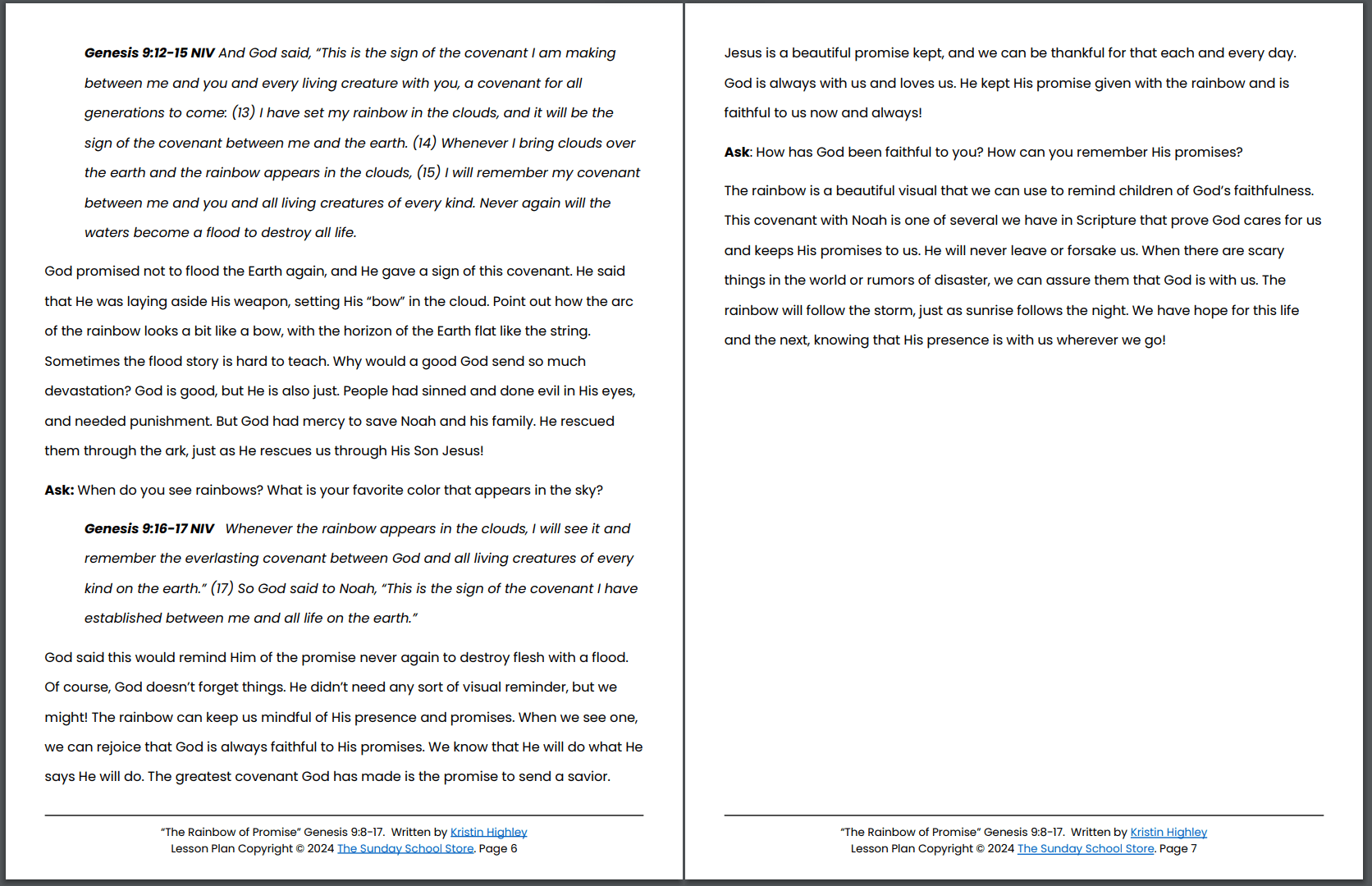 God's Rainbow of Promise to Noah (Genesis 9:8-17) Printable Bible Lesson & Sunday School Activities PDF