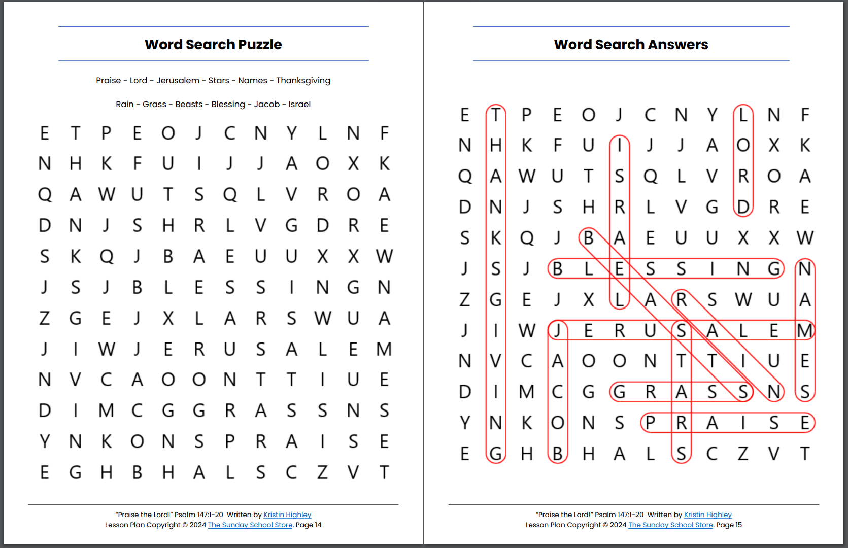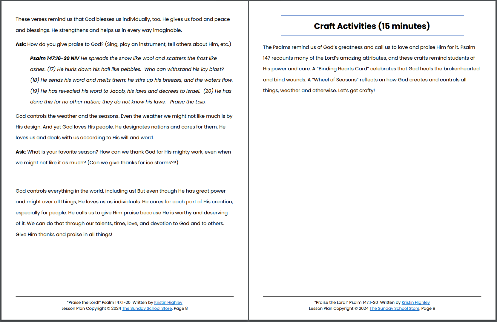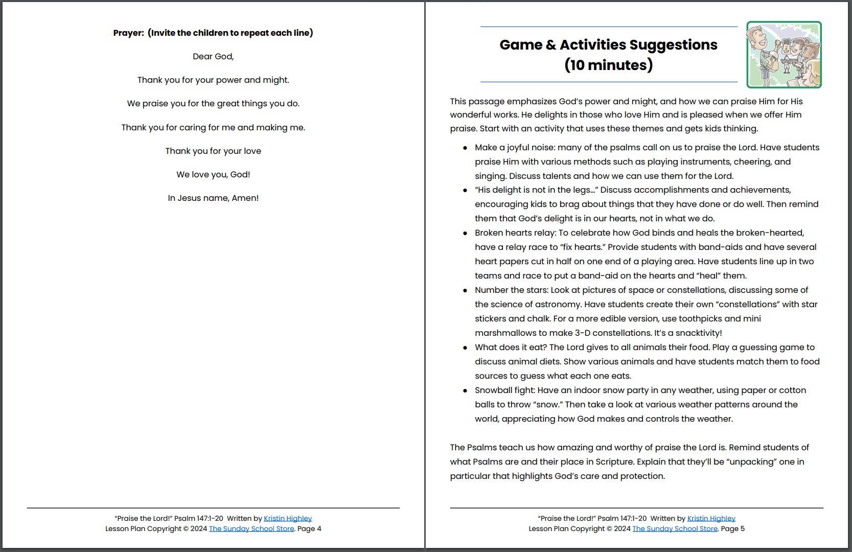 Praise the Lord! (Psalm 147:1-20) Printable Bible Lesson & Sunday School Activities PDF