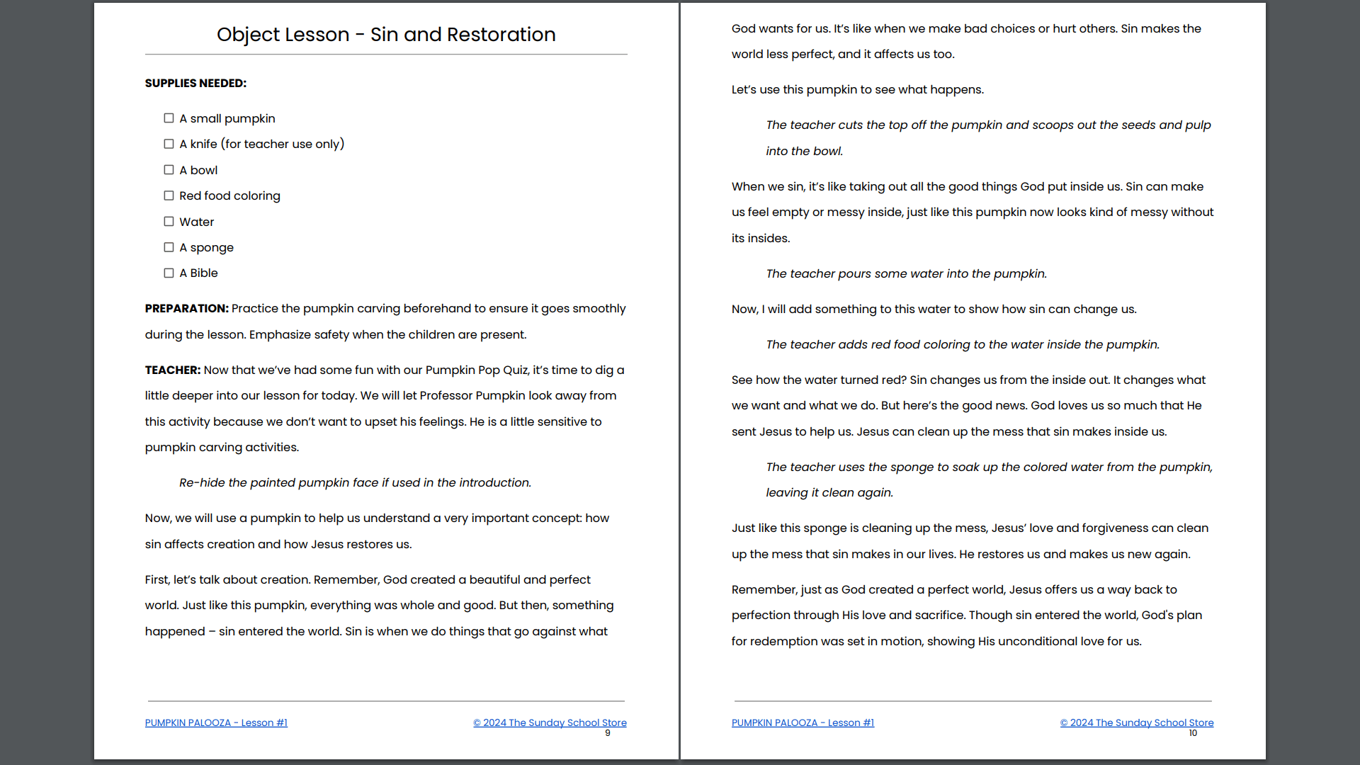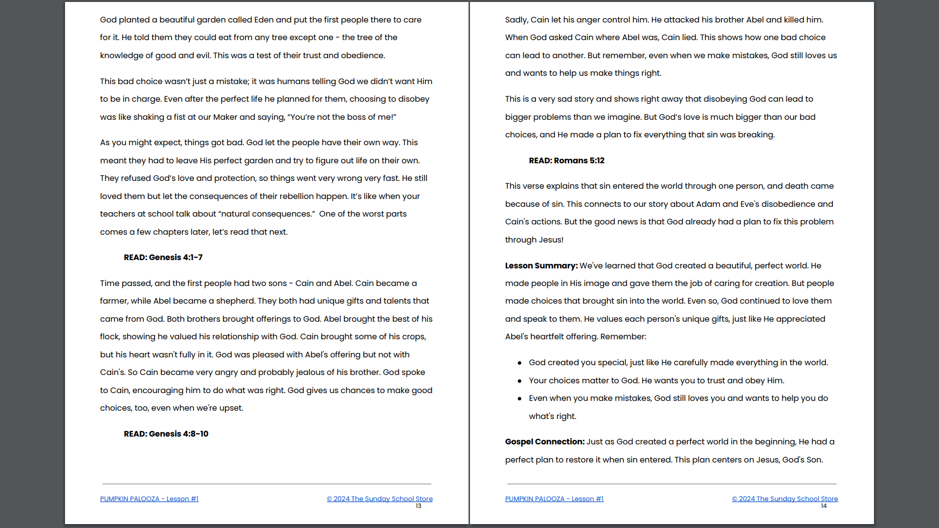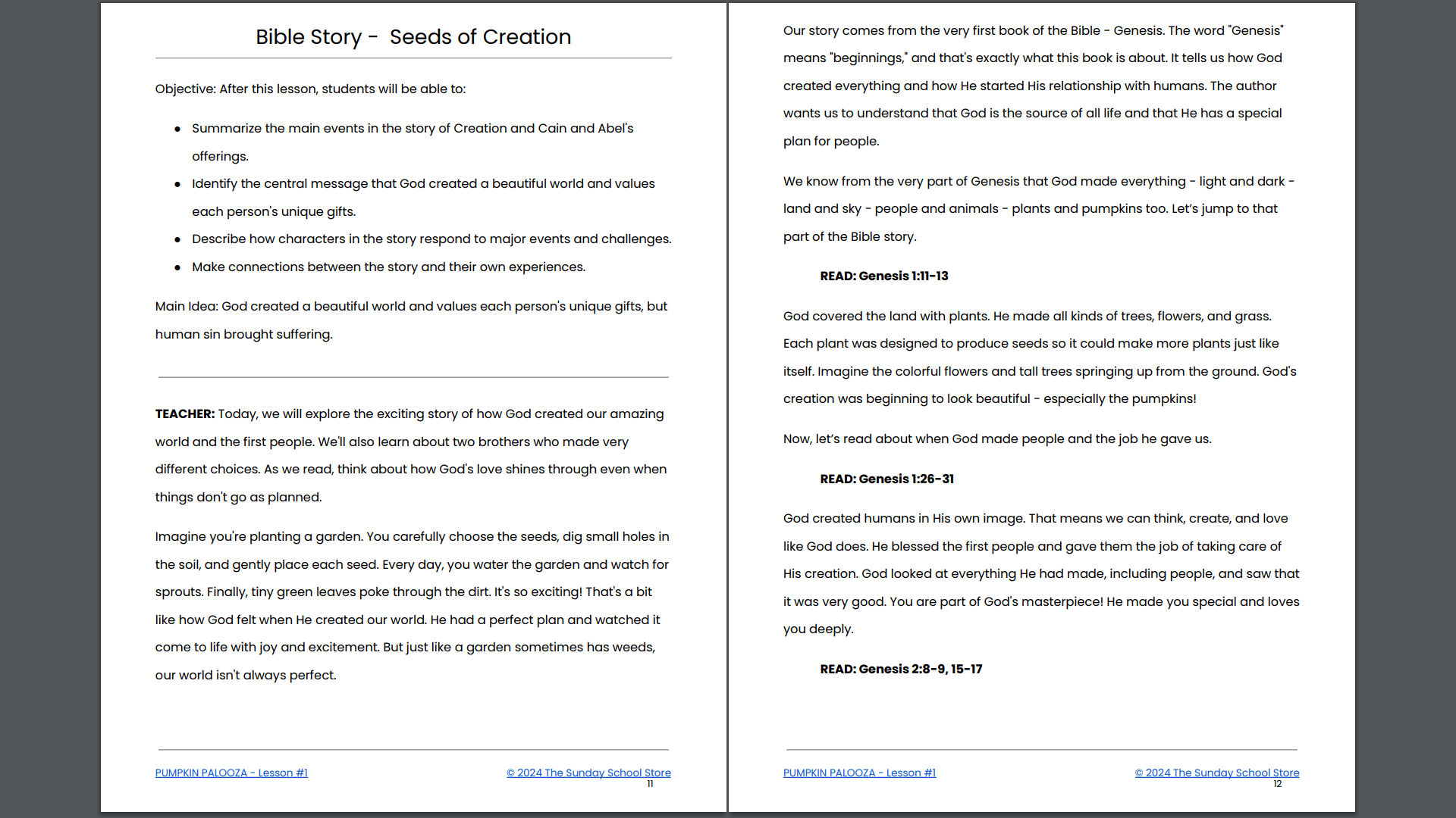 PUMPKIN PALOOZA is a 4-lesson children's ministry curriculum that celebrates God's creation and His abundant blessings during the fall season. Through engaging activities, pumpkin-themed games, and diverse learning experiences, children aged 6-12 will explore key Bible stories about creation, growth, gratitude, and God's plan for redemption.