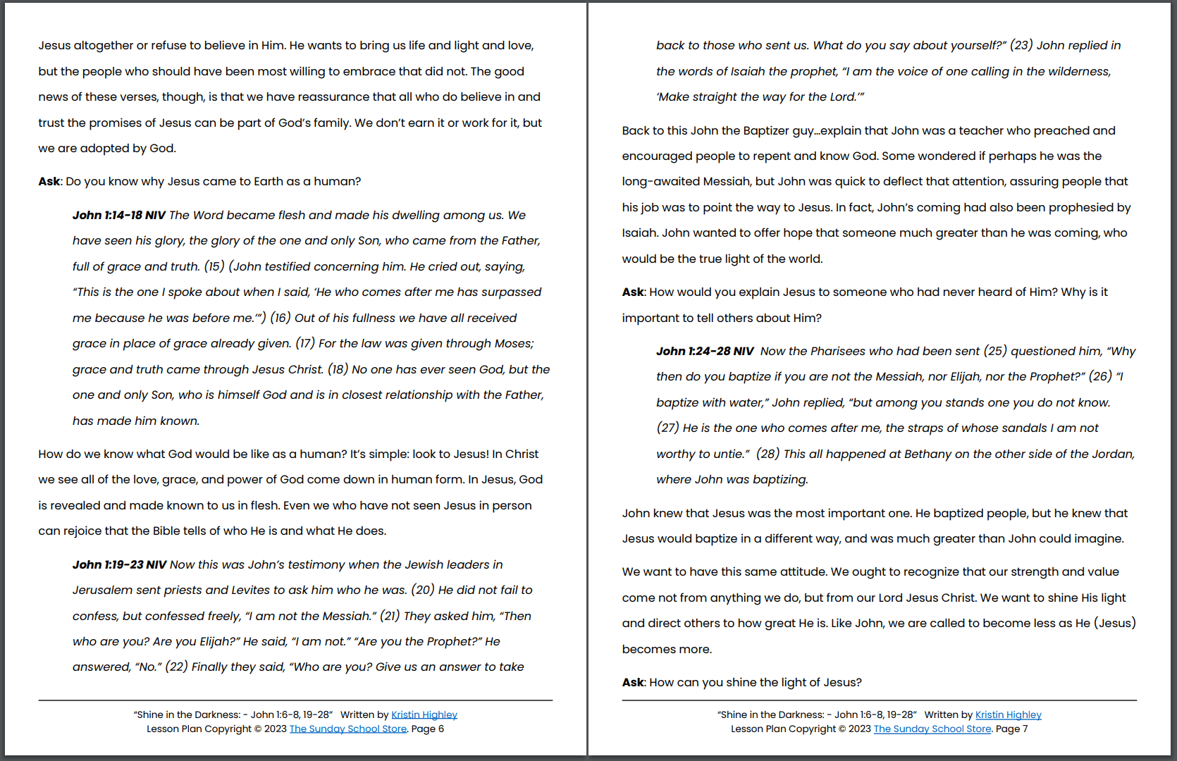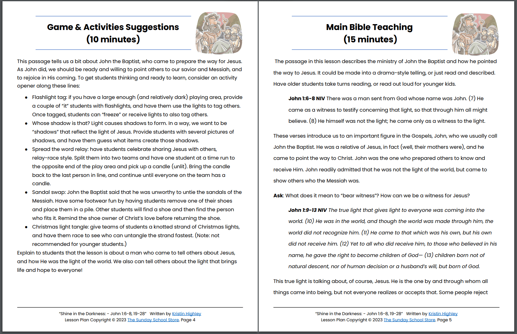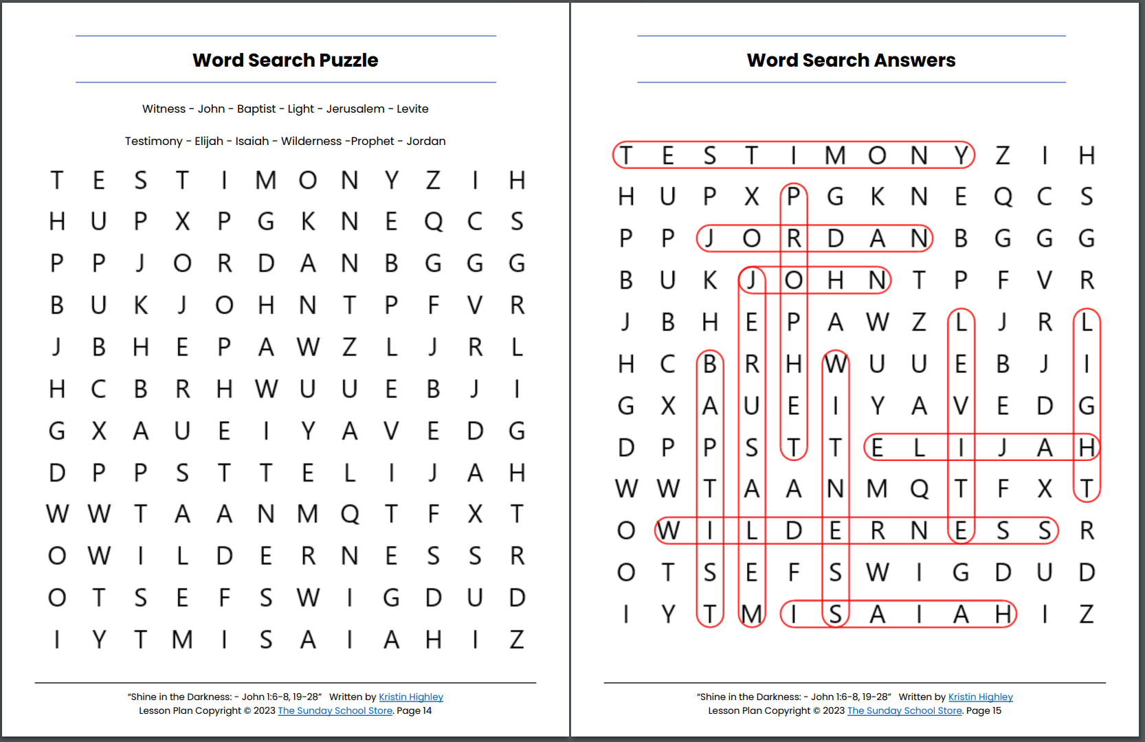 Shine in the Darkness (John 1:6-8, 19-28) Printable Bible Lesson & Sunday School Activities