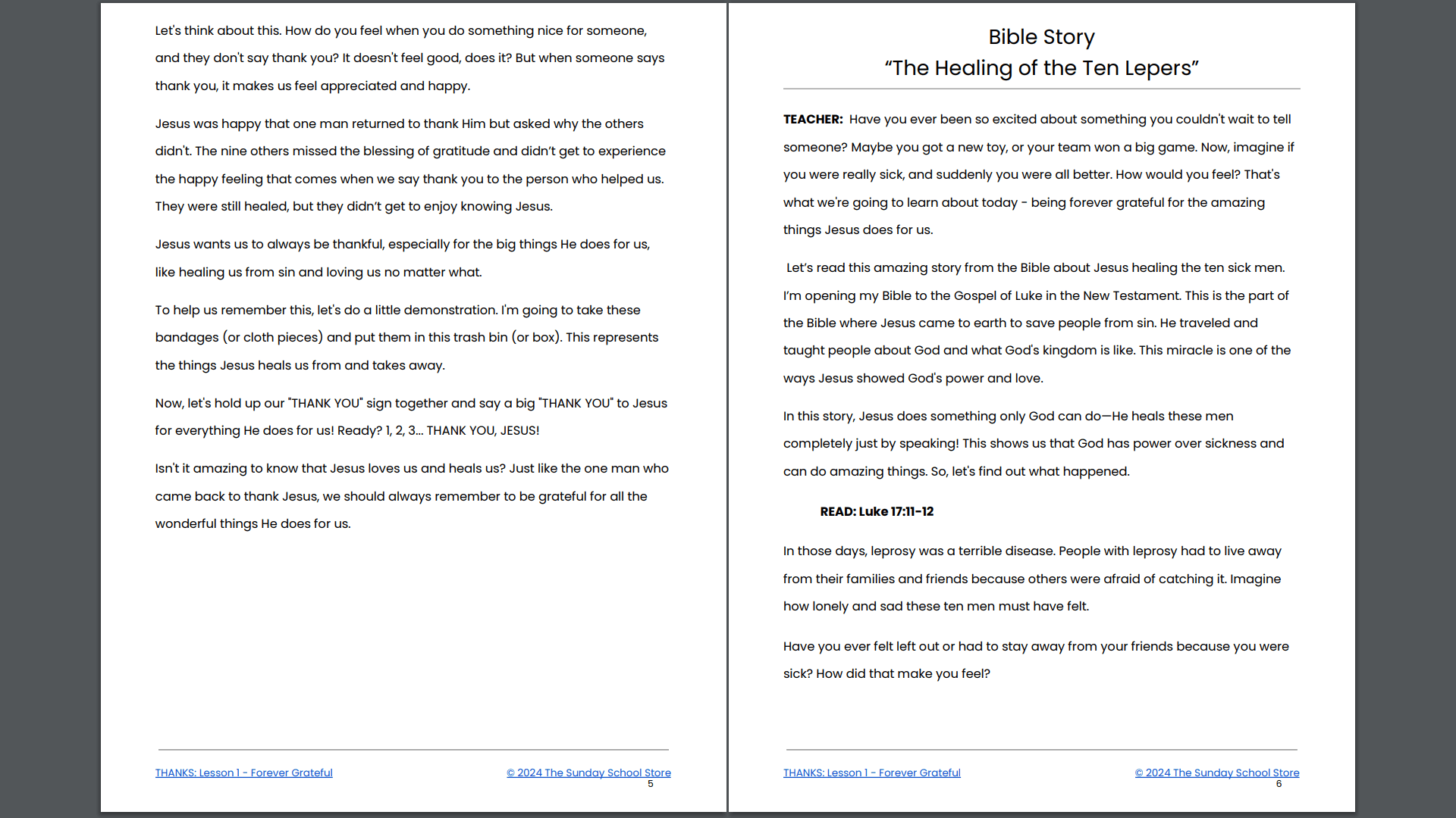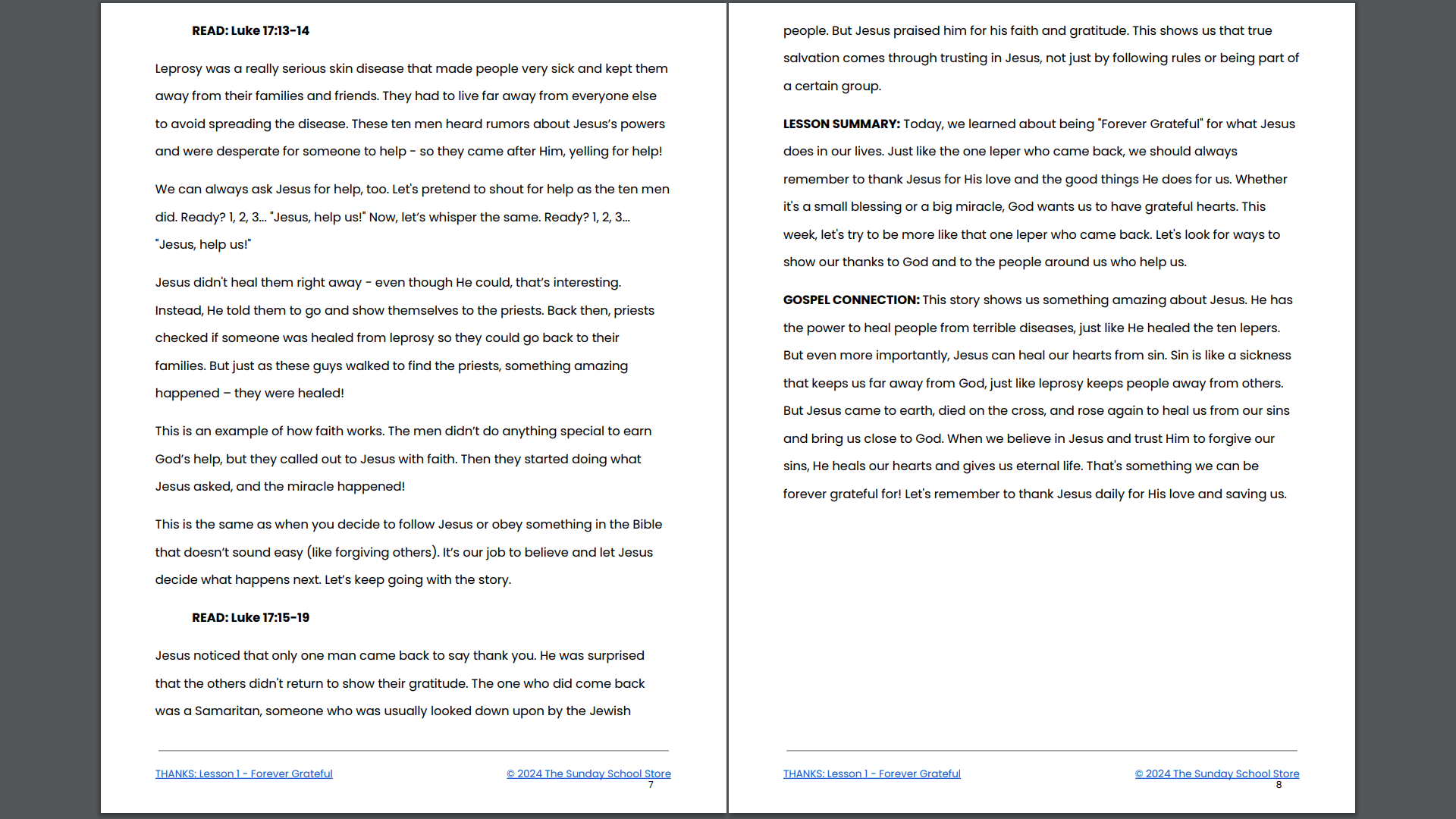 - Gospel Connection: Jesus heals us from sin, and we should always be thankful for His love and sacrifice.