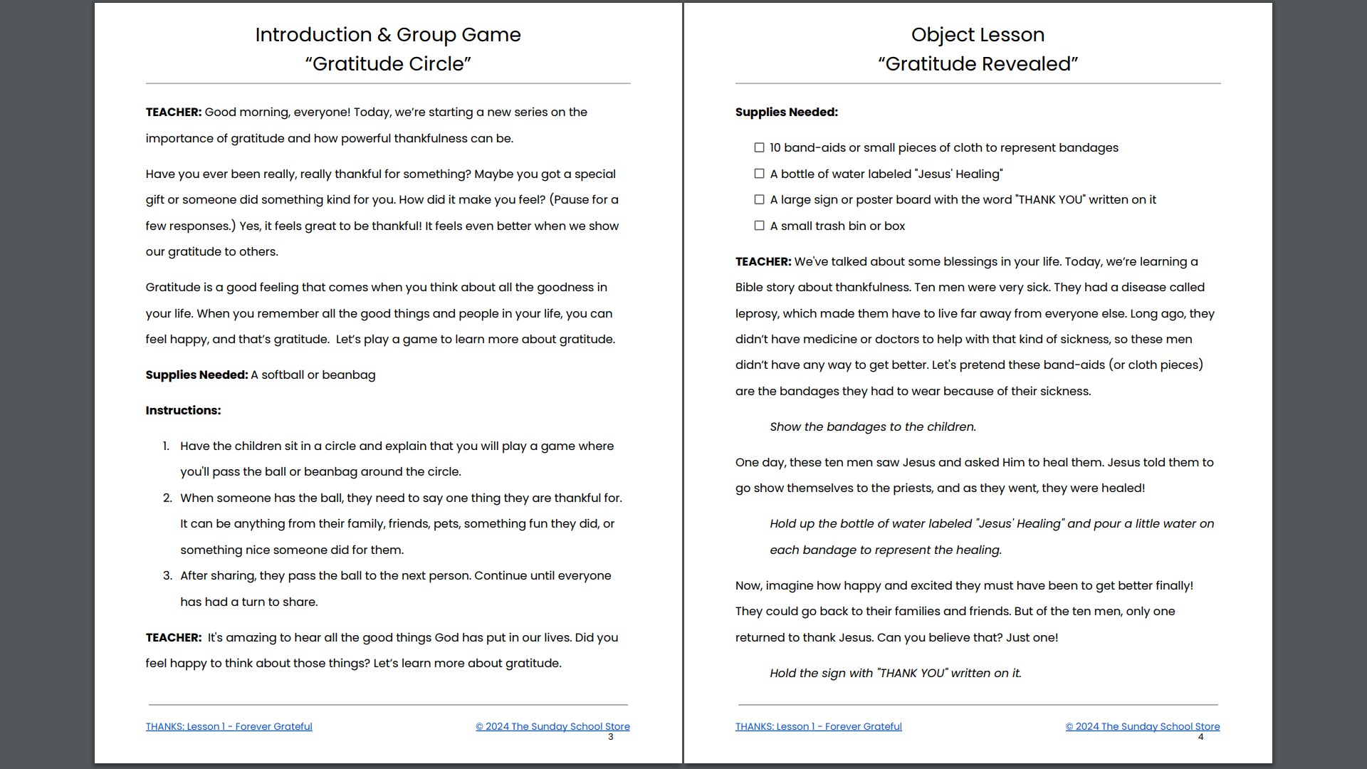 Teaching the "Thanks: 4-Week Curriculum" is vital for churches as it instills the fundamental value of gratitude in young hearts, nurturing a spirit of thankfulness that honors God and enriches their daily lives. This curriculum provides children with engaging Bible stories, practical applications, and fun activities, helping them understand and express gratitude for God's blessings and the support of others. By focusing on both Old and New Testament stories, it offers a well-rounded, scripture-based approach that encourages children to develop a deeper faith in Jesus Christ and to see the positive impact of gratitude in their relationships and communities. Through teaching these lessons, churches can foster a generation of grateful, compassionate believers who recognize and celebrate God's love and authority.