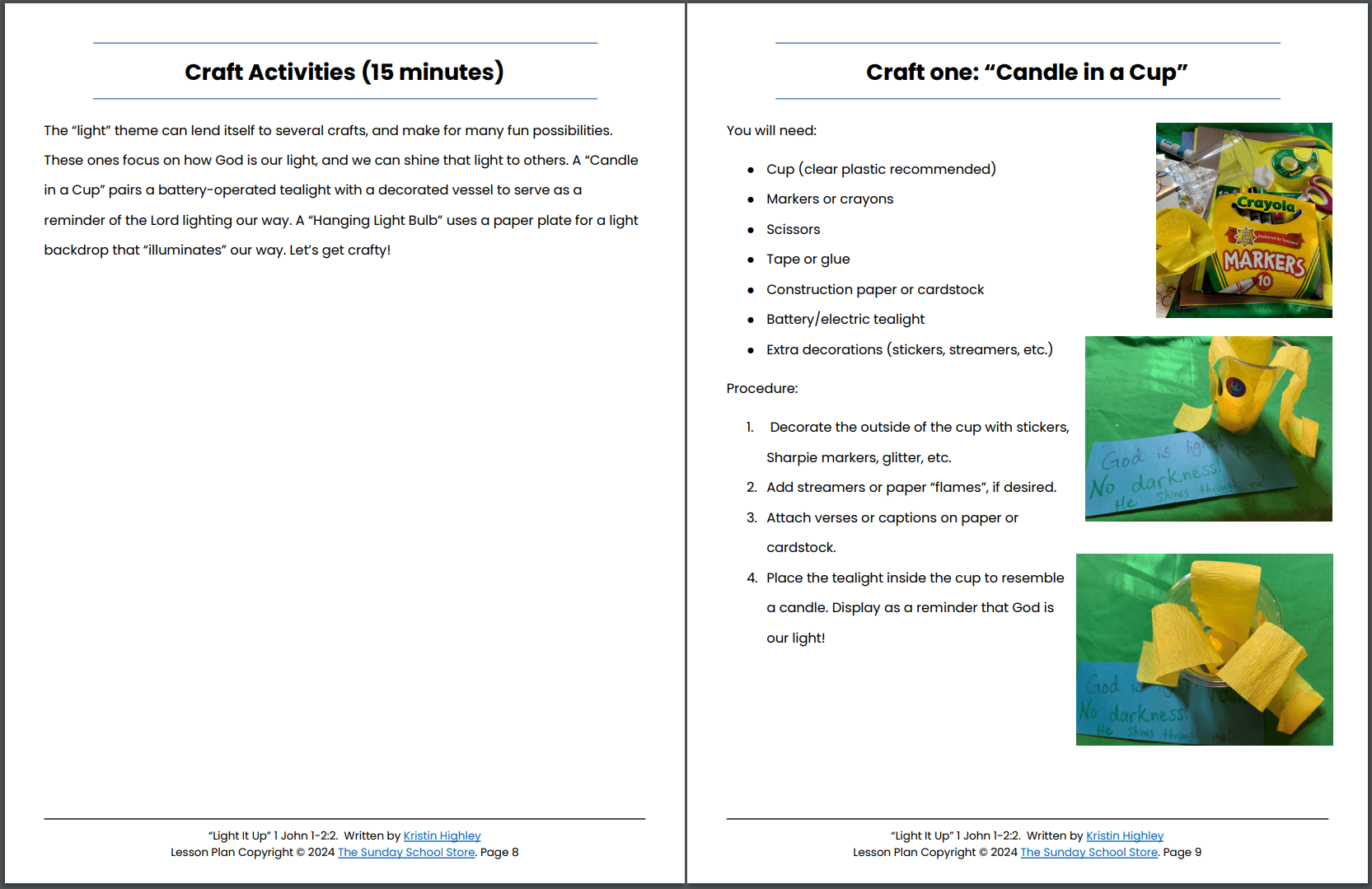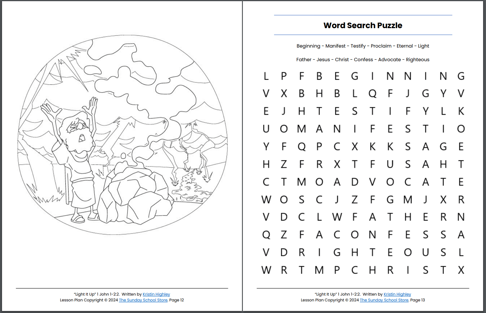 The Light of Christ (John 1:1 - 2:2) Printable Bible Lesson & Sunday School Activities PDF